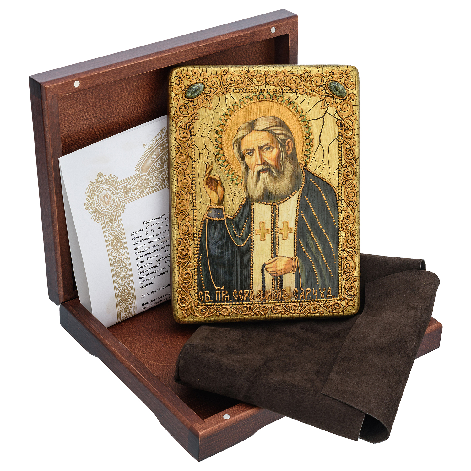 Серафим Саровский (в миру Прохор Исидорович Мошнин/Машнин; 1754 - 1833) являлся иеромонахом Саровского монастыря, основателем и покровителем Дивеевской женской обители. Прославлен Российской церковью в 1903 году в лике преподобных по инициативе императора Николая II. Великий подвижник Русской Церкви, почитаемый монах в ее истории.
