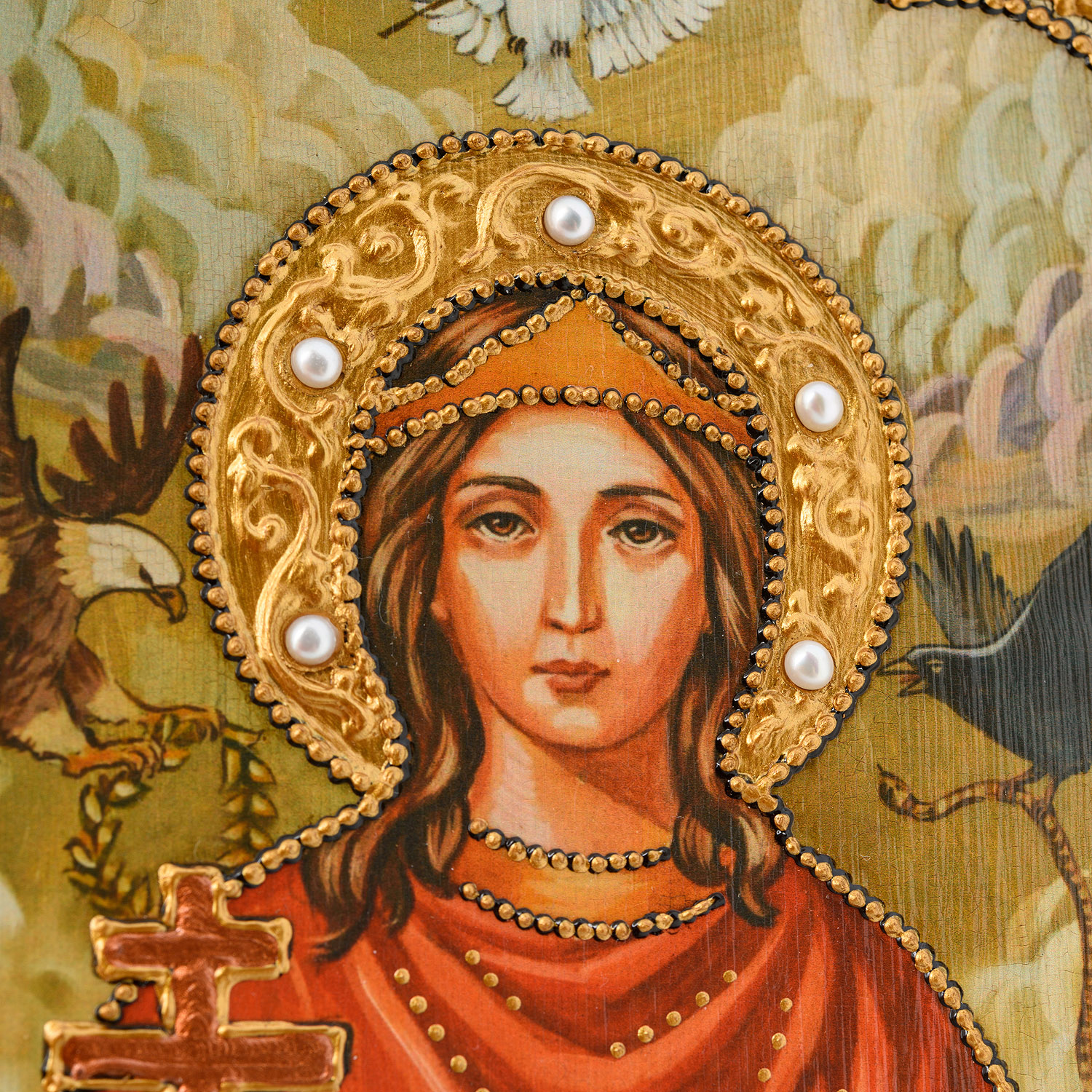 Материалы: мореный дуб, краски, жемчуг, хризопраз.