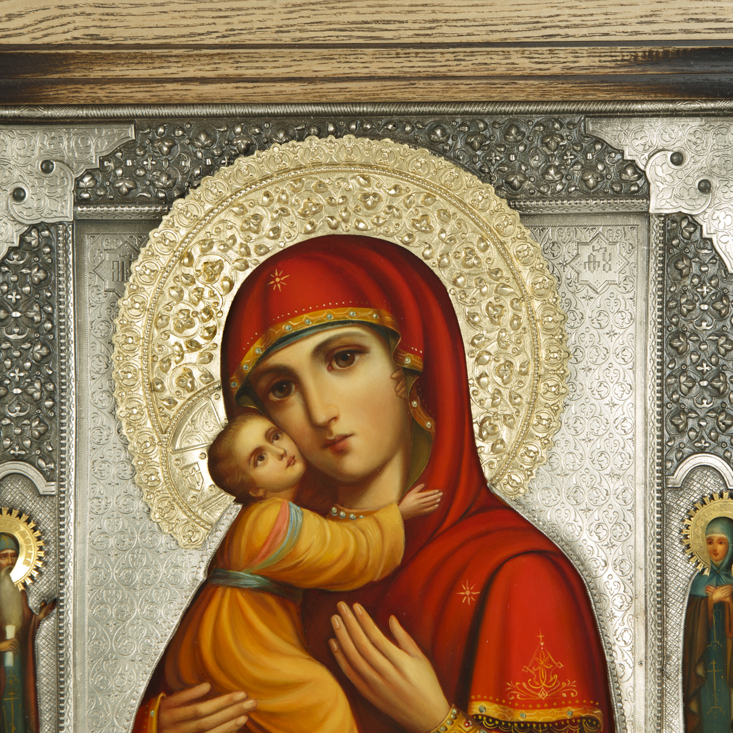 Материалы: дерево, краски, металл, серебрение, золочение, чернение, стекло.