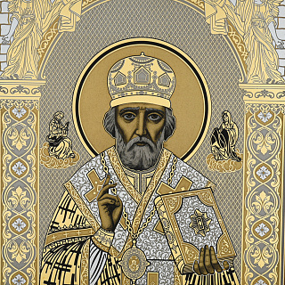 Икона «Николай Чудотворец». Гравюра Златоуст 35х26 см