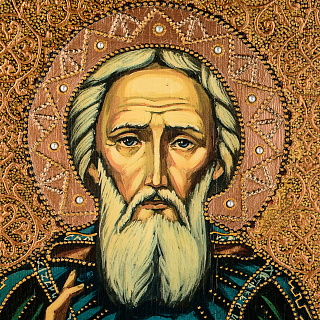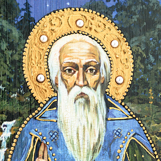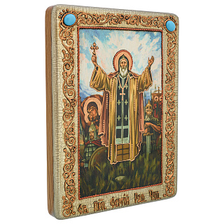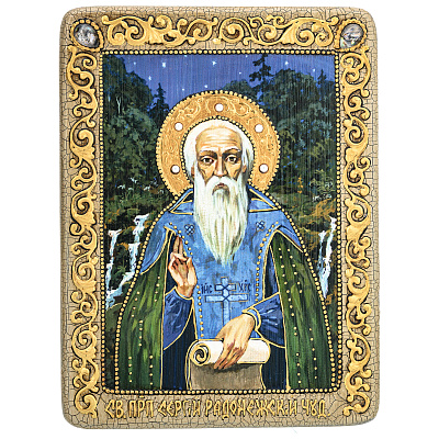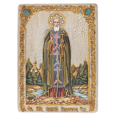 Икона с перламутром «Сергий Радонежский» в киоте 40х30 см