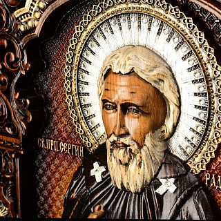 Икона из мореного дуба «Св. Преподобный Сергий Радонежский» 42х29 см