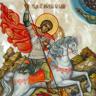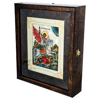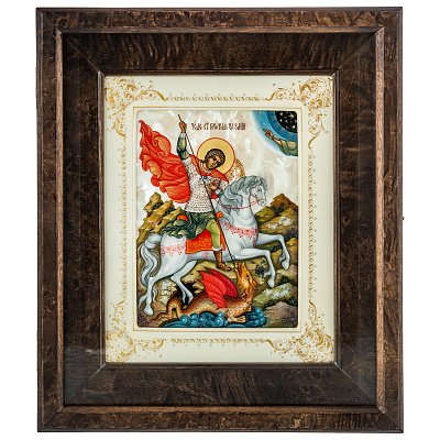 Икона с перламутром «Георгий Победоносец» в киоте 24х29 см