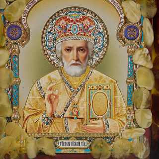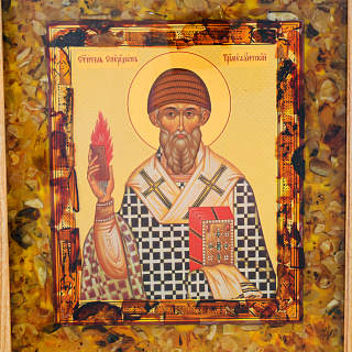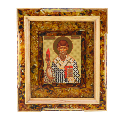 Картина янтарная «Икона Спиридон Тримифунтский» 30 х 40 см
