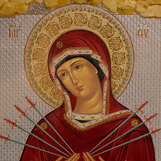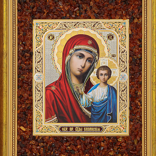 Настенная янтарная икона «Божья Матерь Казанская» 27х31,5 см