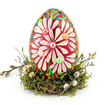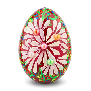 Яйцо пасхальное подарочное с росписью и бисером «Цветы» 8 см