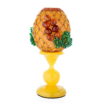 Пасхальное яйцо из янтаря с бисером «Рябина»