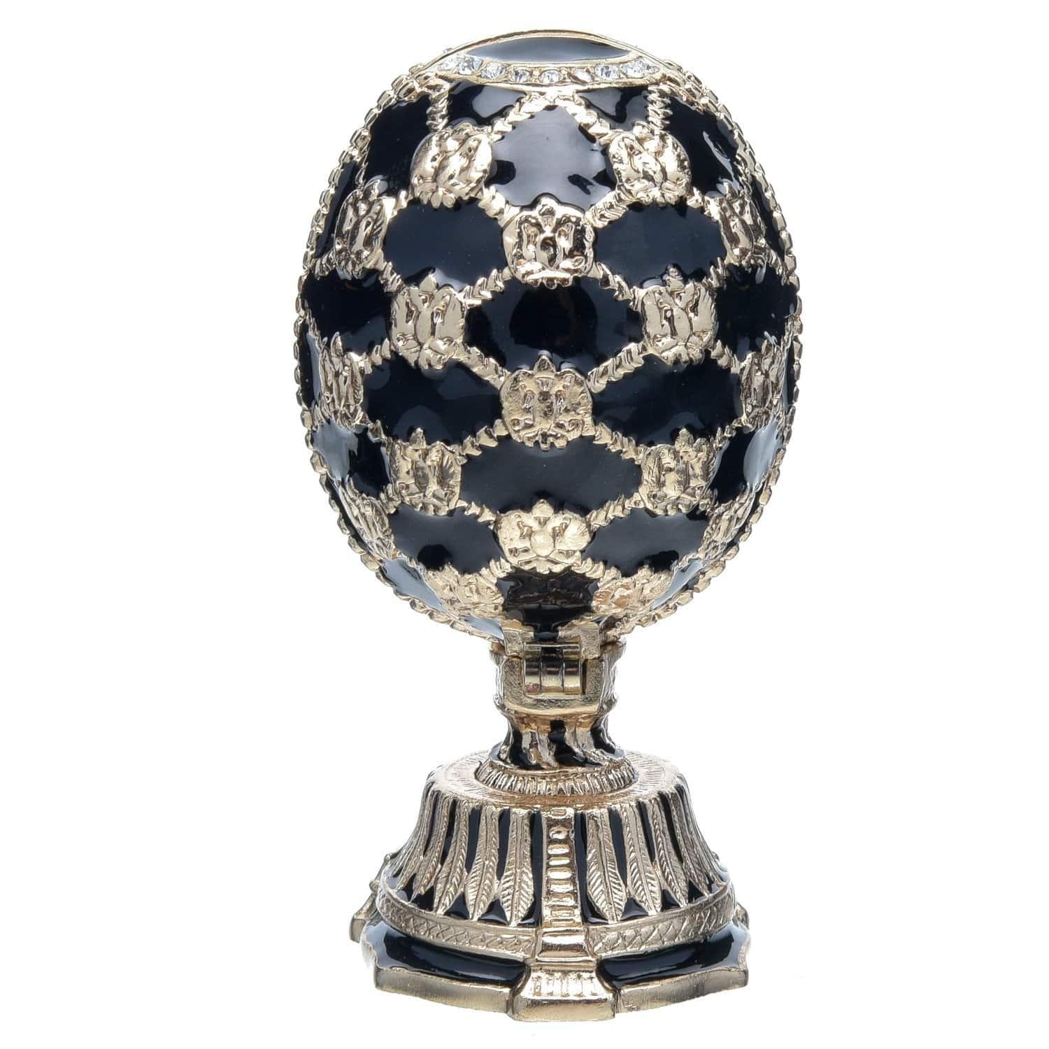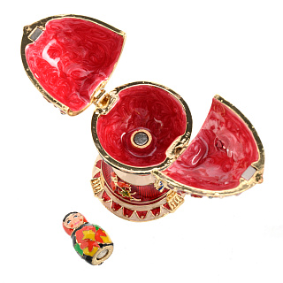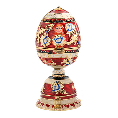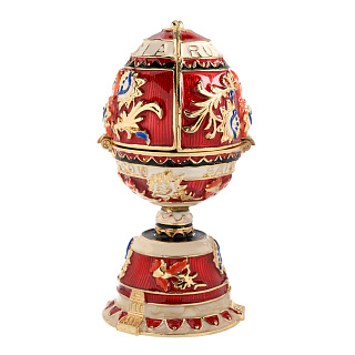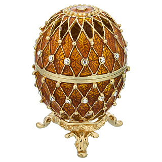 Латунная форма шкатулки-яйца покрыта эмалью методом гильошированной эмали, освоенным мастерами Фаберже, благодаря которому достигается прозрачность, сочность и глубина цвета изделия. По традиции яйцо усыпано полудрагоценными камнями - сияющими фианитами, придающими блеск и сияние эмалировке и позолоте. Яйцо есть в двух цветовых вариантах. Прекрасный подарок дорогому человеку, бизнес-партнеру на Пасху. общий или личный праздник.