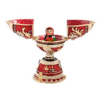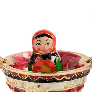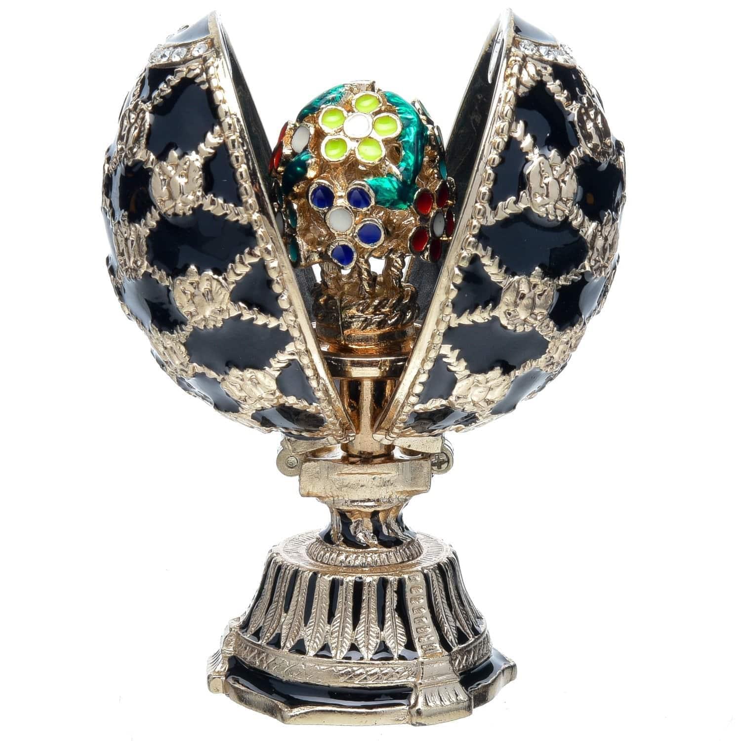 В данном яйце тоже спрятан сюрприз - скульптура букета цветов, оформленная эмалевыми красками. Вы можете хранить в яйце ювелирные изделия, так и полезные мелочи. Корпус яйца отлит из латуни - поделочного металлического сплава, высоко ценимого ремесленниками всего мира. К тому же, этот уникальный сплав меди и цинка способен оказывать особое, благотворное воздействие на человека.