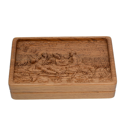 Деревянная резная шкатулка «Охотники на привале»