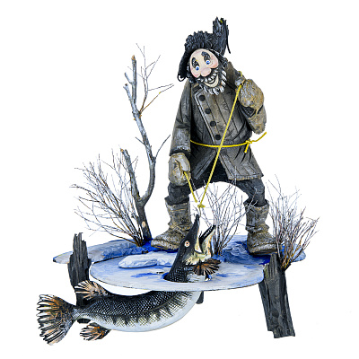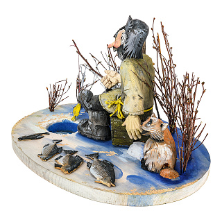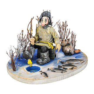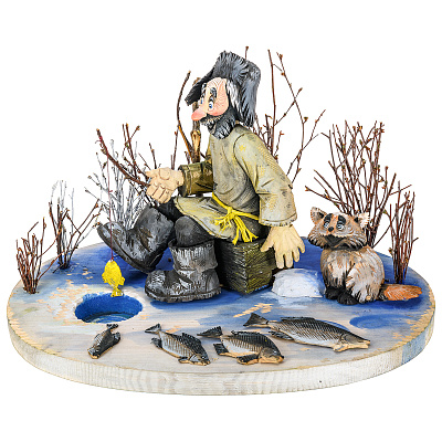 Резьба по дереву. Скульптура «Зимний рыбак»