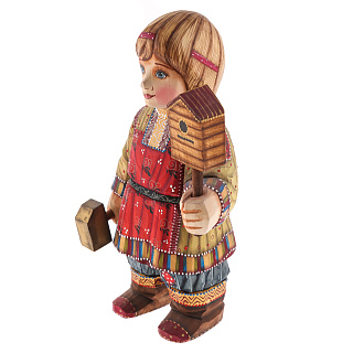 Деревянная резная скульптура «Индеец с трубкой». Высота 81 см
