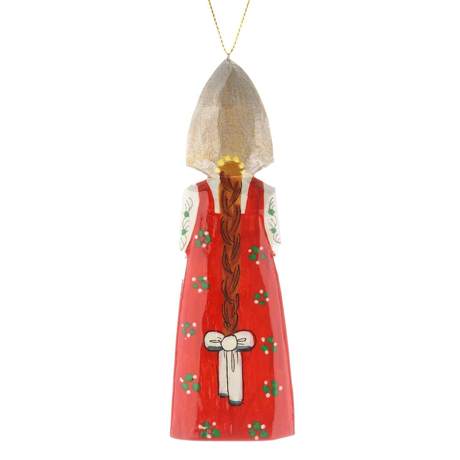 Образ русской красавицы в национальном костюме, длинном сарафане и высоком головном уборе, кокошнике воплощен в скульптуре, вырезанной из дерева вручную. Дерево - тот поделочный материал, который, согласно древним поверьям, наилучшим образом обеспечивает связь человека с богом. Авторская деревянная игрушка "Кукла" - вариант универсального подарка-сувенира в русском стиле.