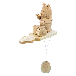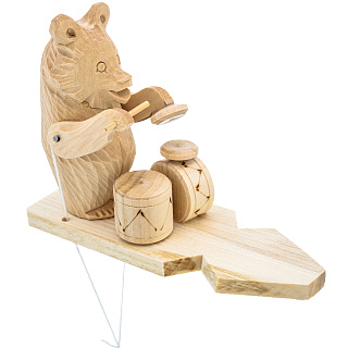 Богородская деревянная игрушка «Медведь за ударными инструментами»