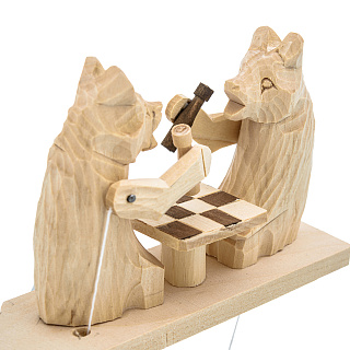 Богородская деревянная игрушка «Медведи шахматисты»