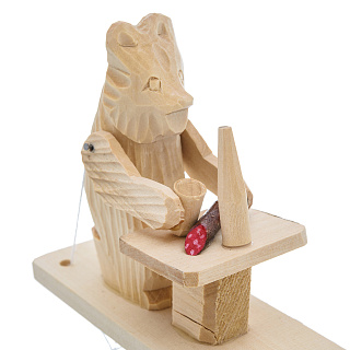Богородская деревянная игрушка «Медведь с колбасой»
