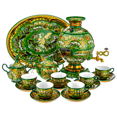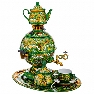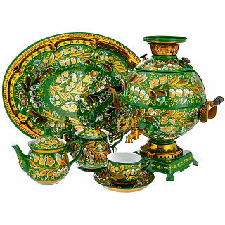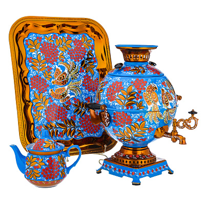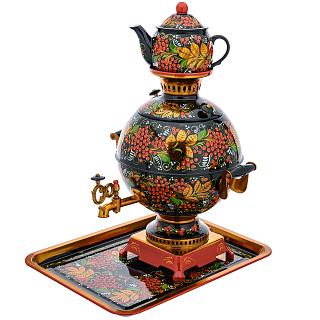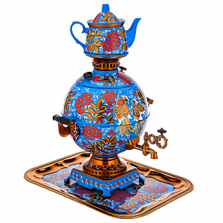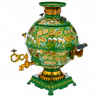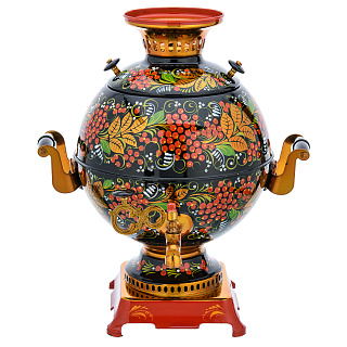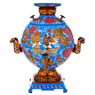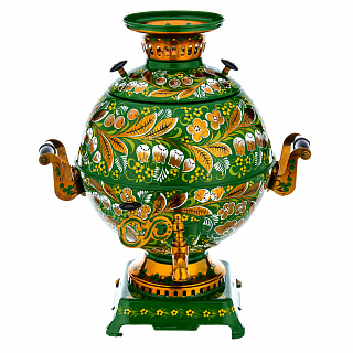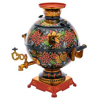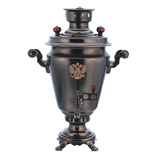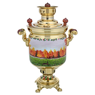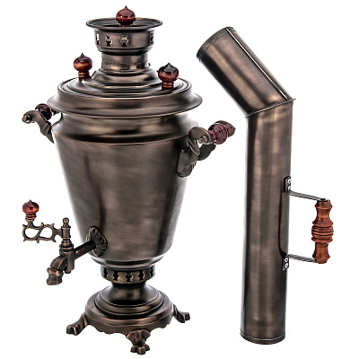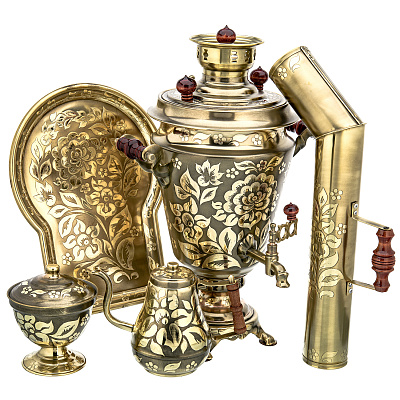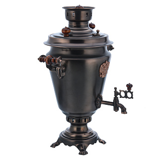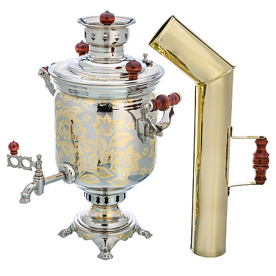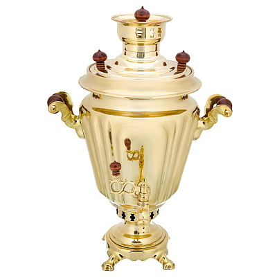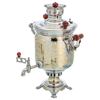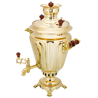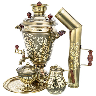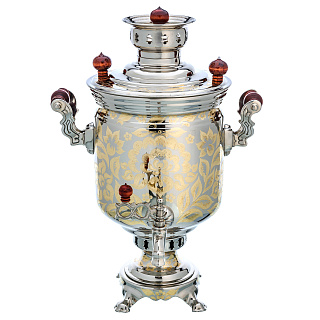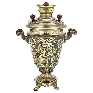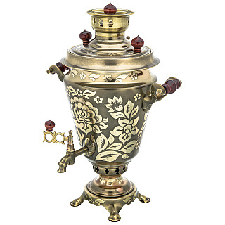 Самовар комбинированный латунный 5 л «Цветы». Форма Банка