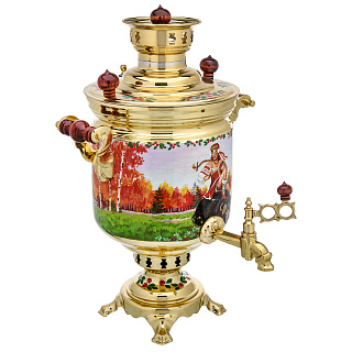 Самовар комбинированный латунный 5 л «Девушка с медведем»