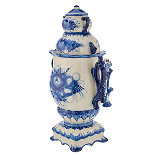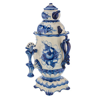 Они расписаны вручную в лучших традициях гжельской росписи, зародившейся еще в 17 веке. Самовары с Гжелью очаруют своим великолепием даже самого искушенного человека. Белоснежный фарфор в сочетании с насыщенно-синим цветом производит потрясающее впечатление. Мы, русский дом подарков, уверены: в нашей коллекции фарфоровых самоваров с Гжелью Вы без труда найдете достойный презент дорогим людям. Подобрать фарфоровый самовар в подарок просто. Достаточно обратиться в магазин «Русь Великая».