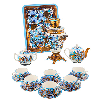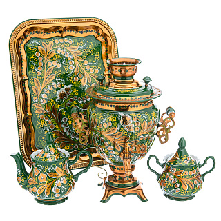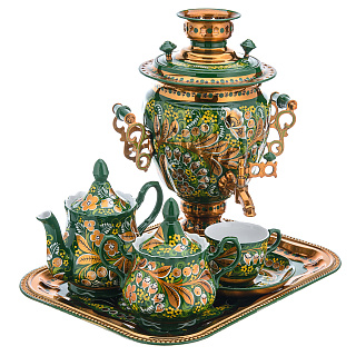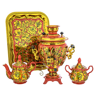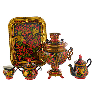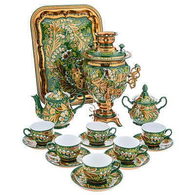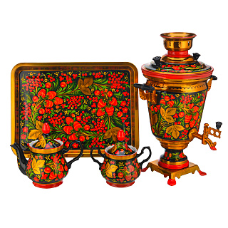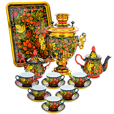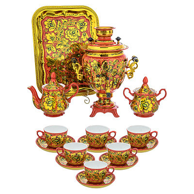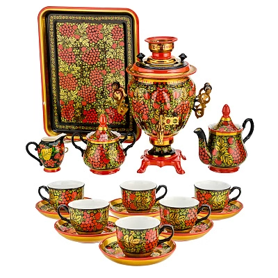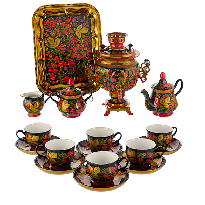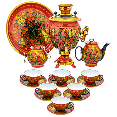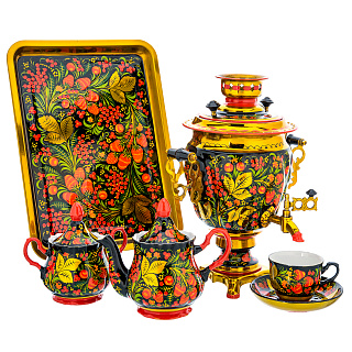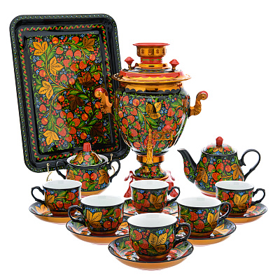 Чайный сервиз на 6 персон с самоваром «Предания старины». Хохлома