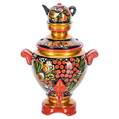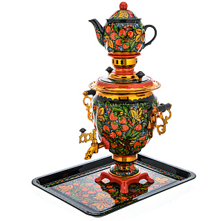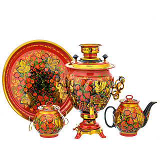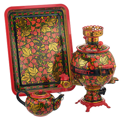 Самовар электрический 3 л с сервизом «Клубника». Хохлома