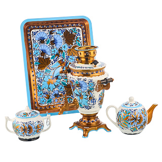 Самовар электрический 1,5 л с сервизом «Васильки». Хохлома