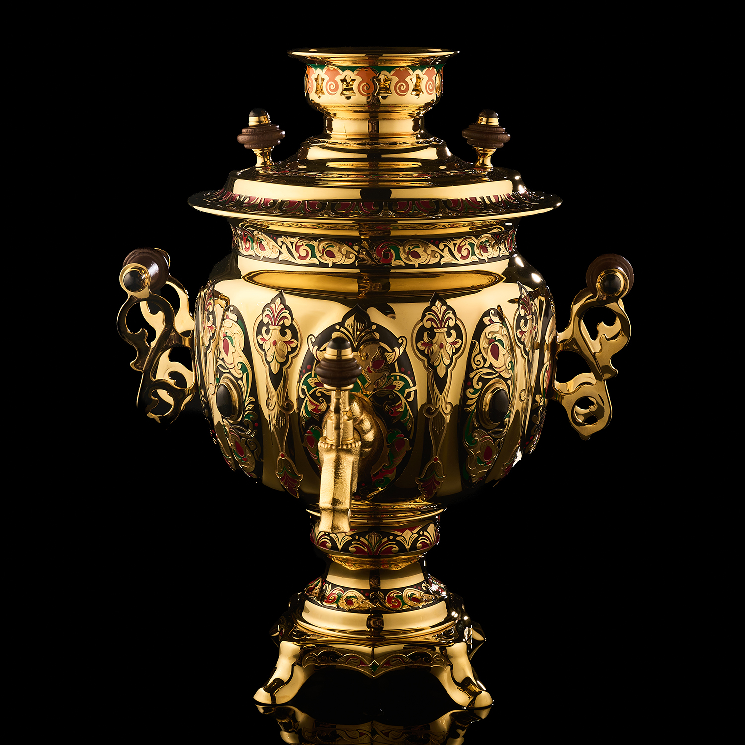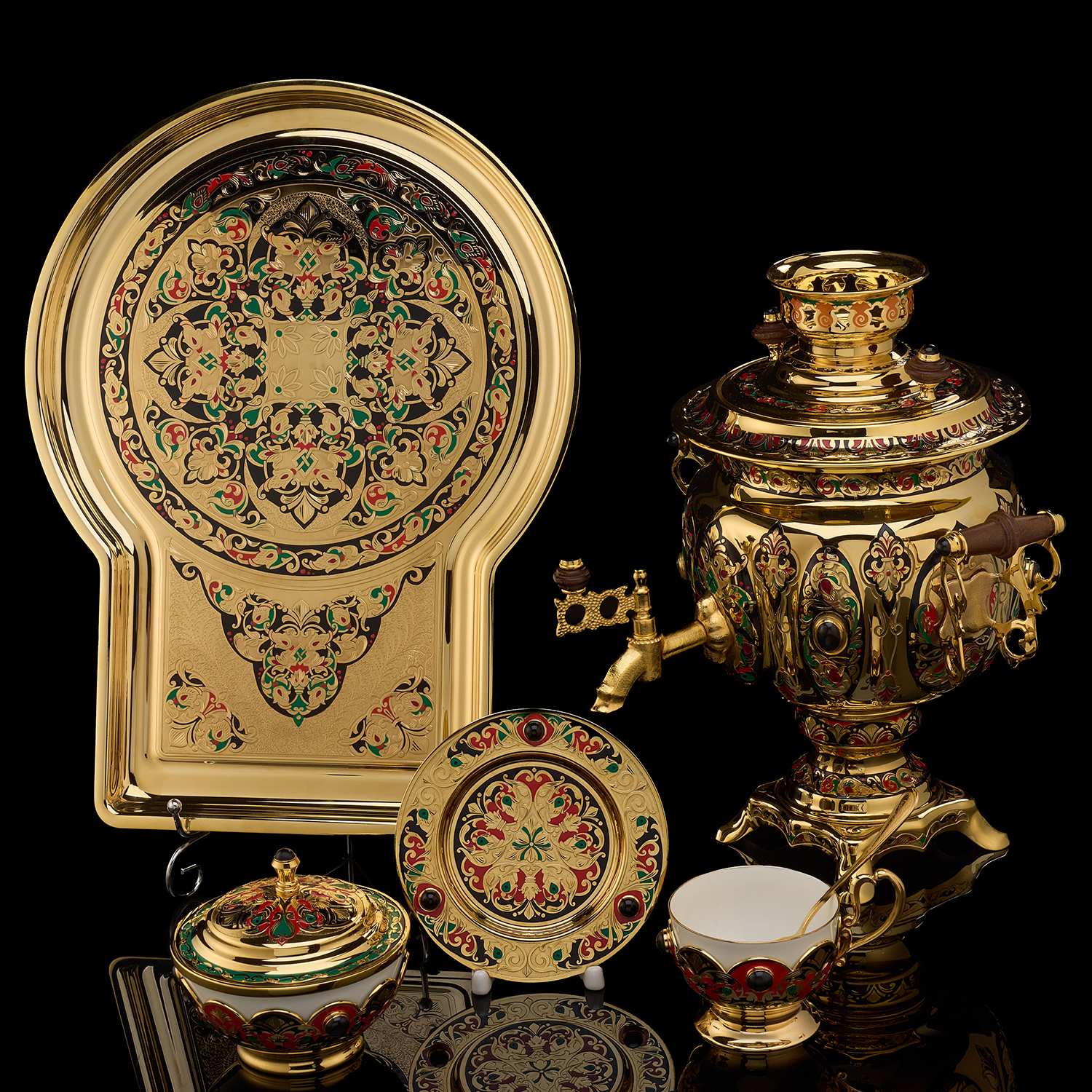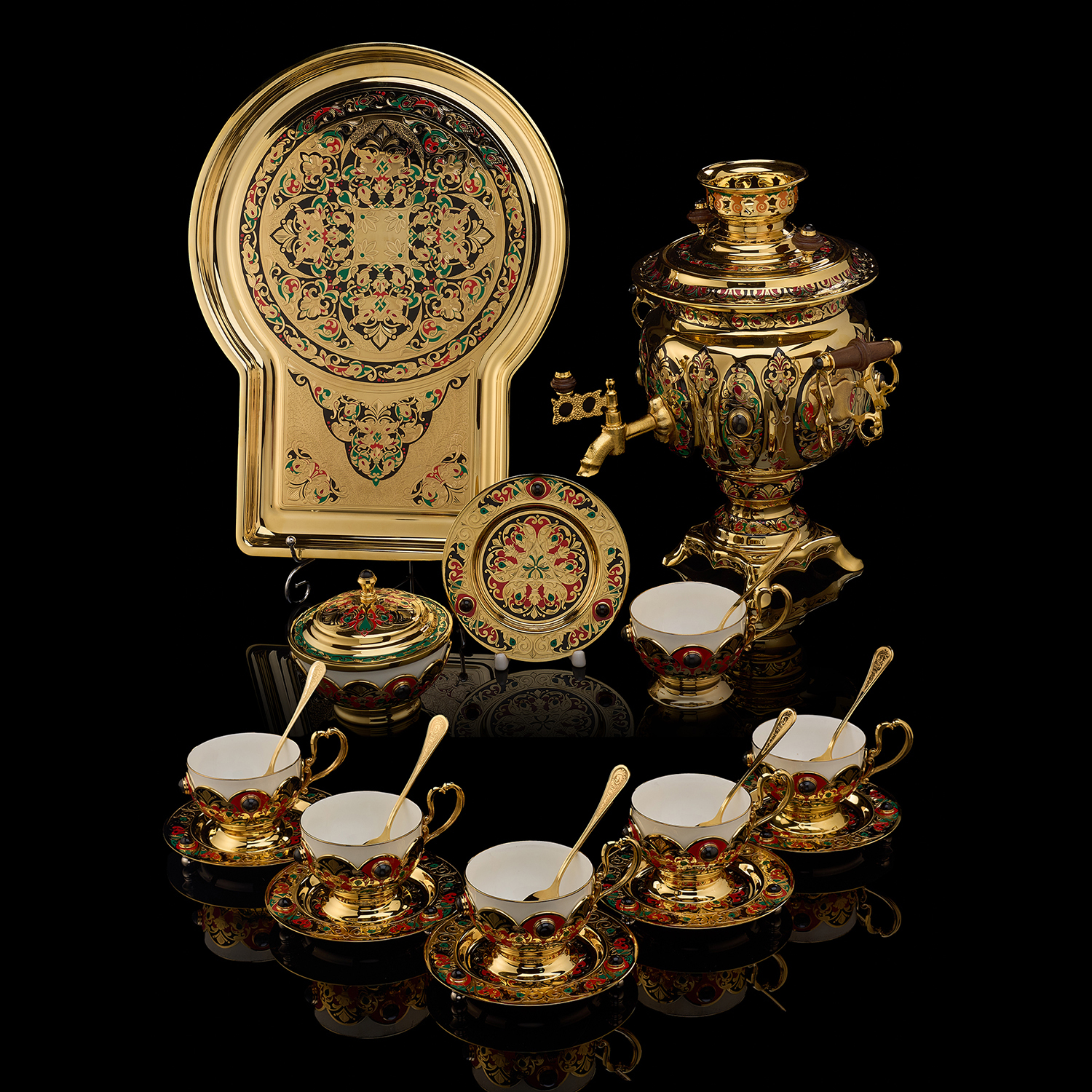 Самовар с сервизом на 6 персон "Золотая хохлома". Златоуст.