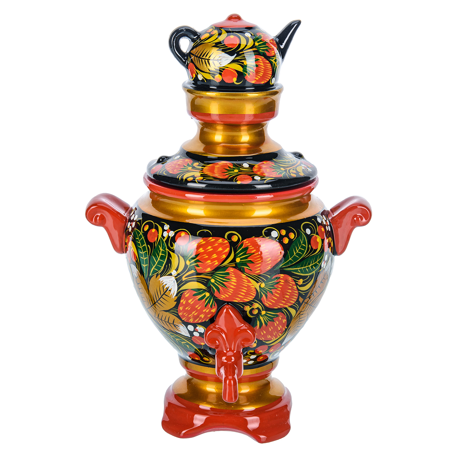 Сувенирный самовар-шкатулка "Клубника". Хохлома.