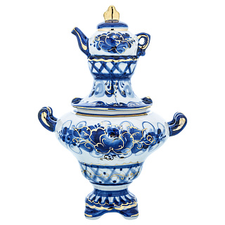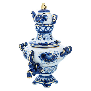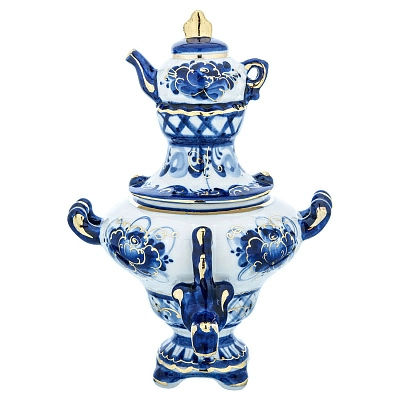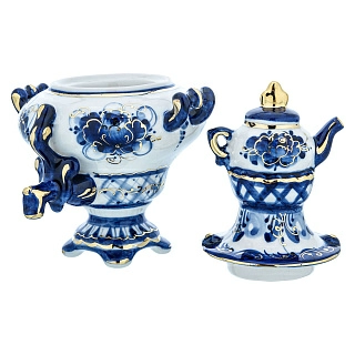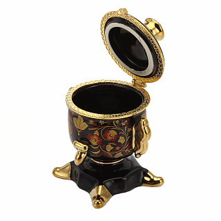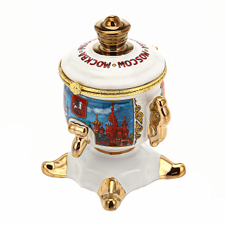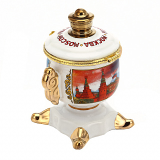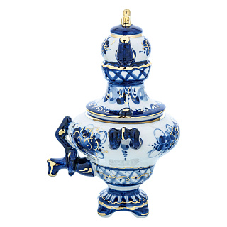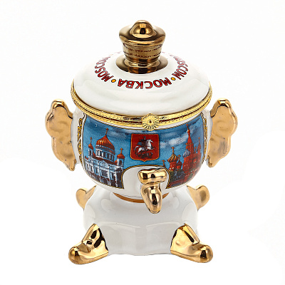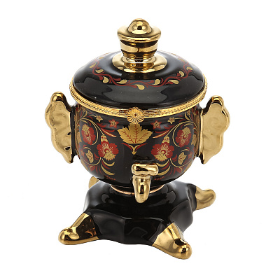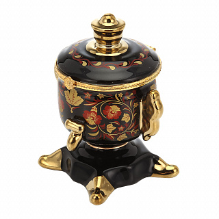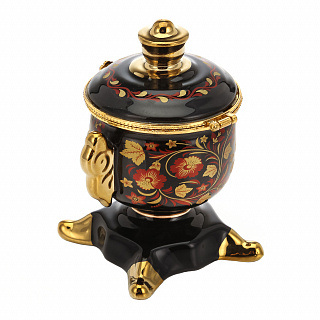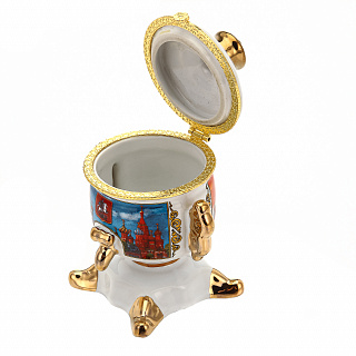 Сувенирный самовар-шкатулка. Гжель в золоте