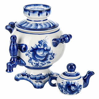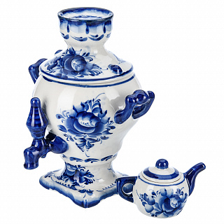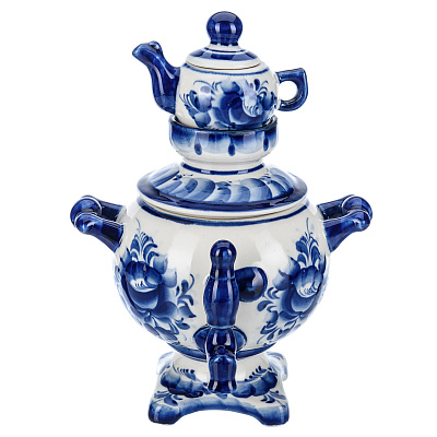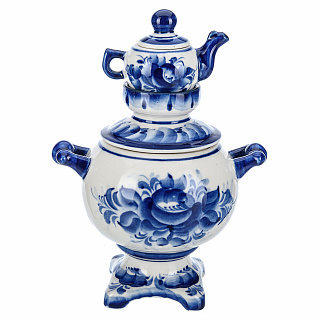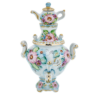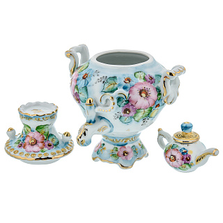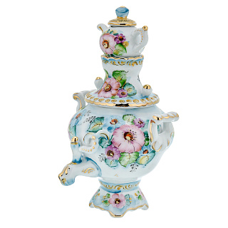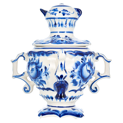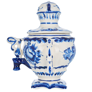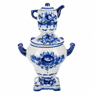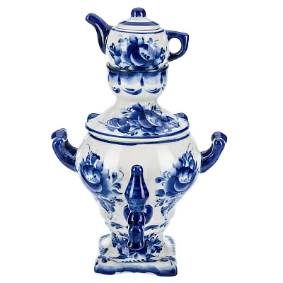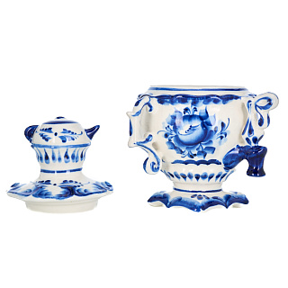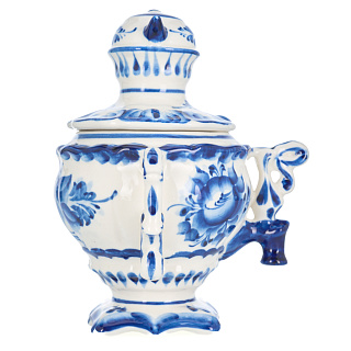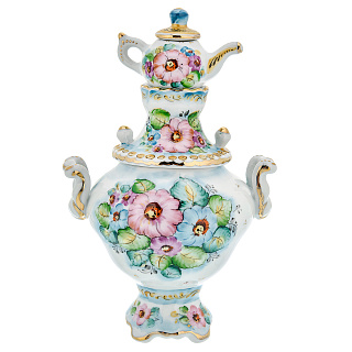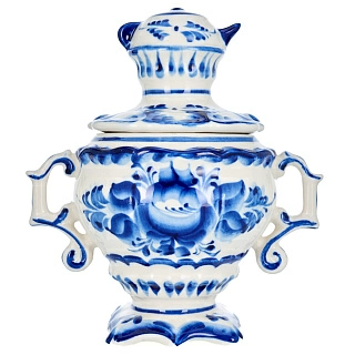 Сувенирный самовар-шкатулка «Цветы». Гжель в цвете