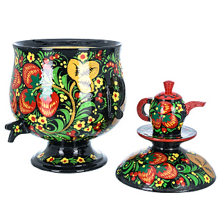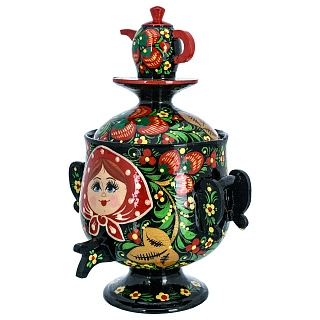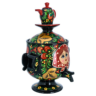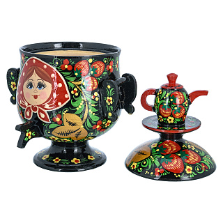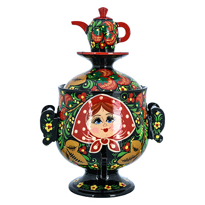 Сувенирный самовар-шкатулка «Матрешка». Хохлома