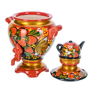 Сувенирный самовар-шкатулка «Рябина». Хохлома