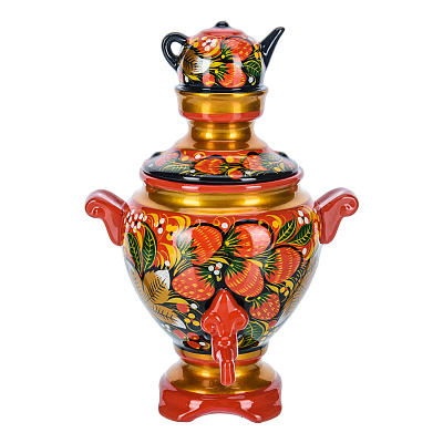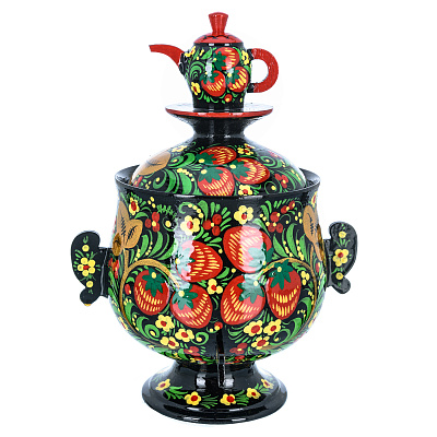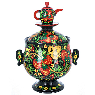 Сувенирный самовар-шкатулка «Клубника». Хохлома