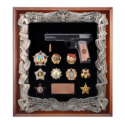 Панно «Пистолет ТТ с наградами ВОВ». Гальванопластика 44х40 см