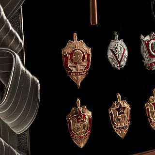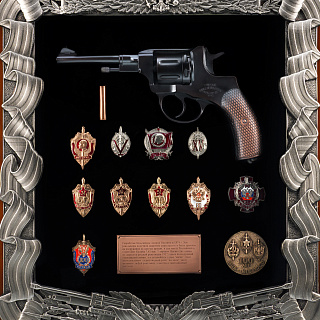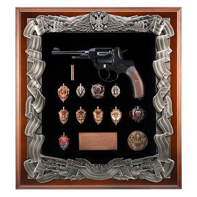 Панно «Пистолет Наган со знаками ФСБ». Гальванопластика 44х40 см