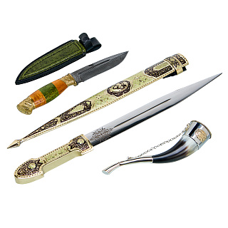 Подарочный набор с кинжалом и рожками для вина «Янычар»