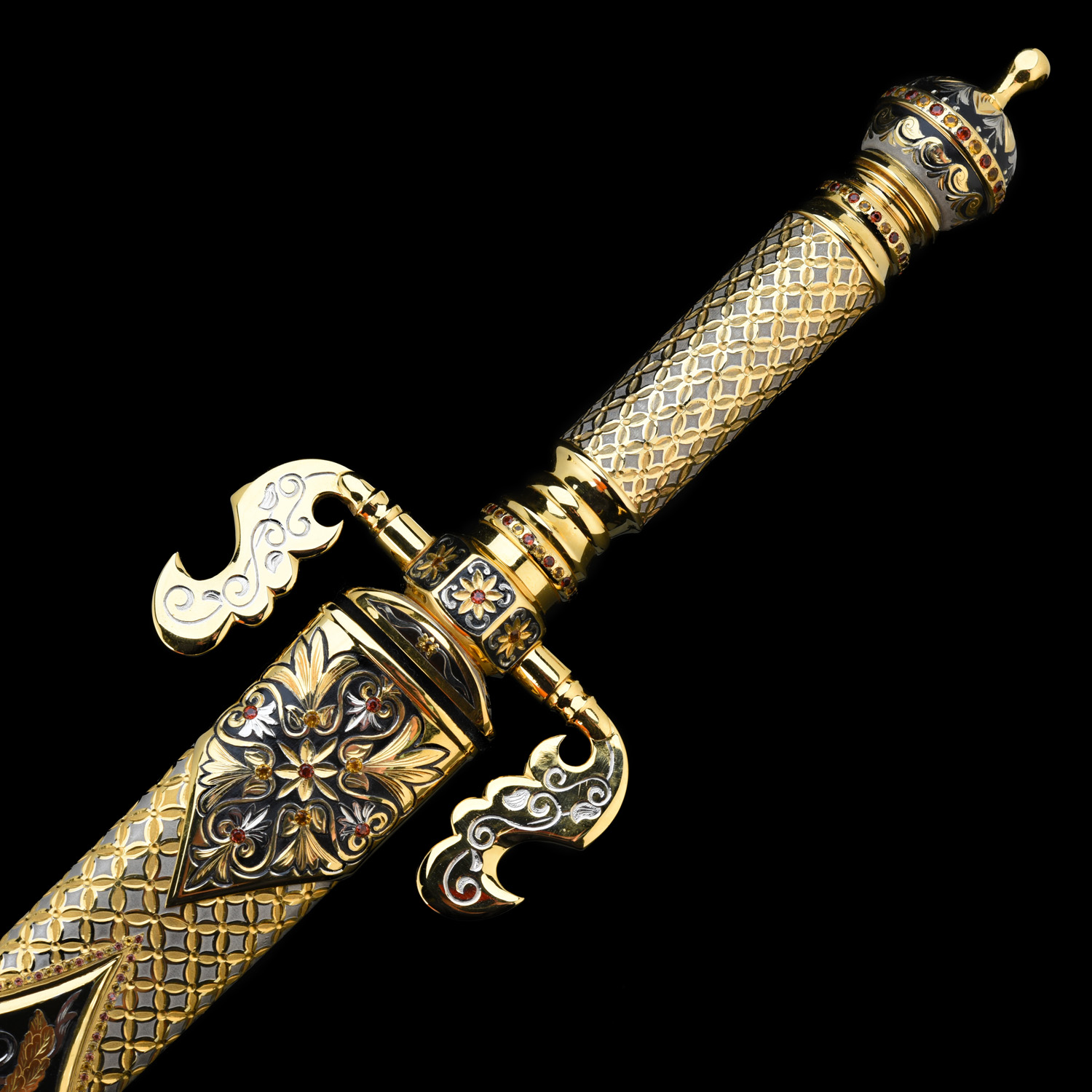 Материалы: сталь ЭИ-107, латунь, никель, золото 999,9*, эмаль, чернение, гранат, цитрин.