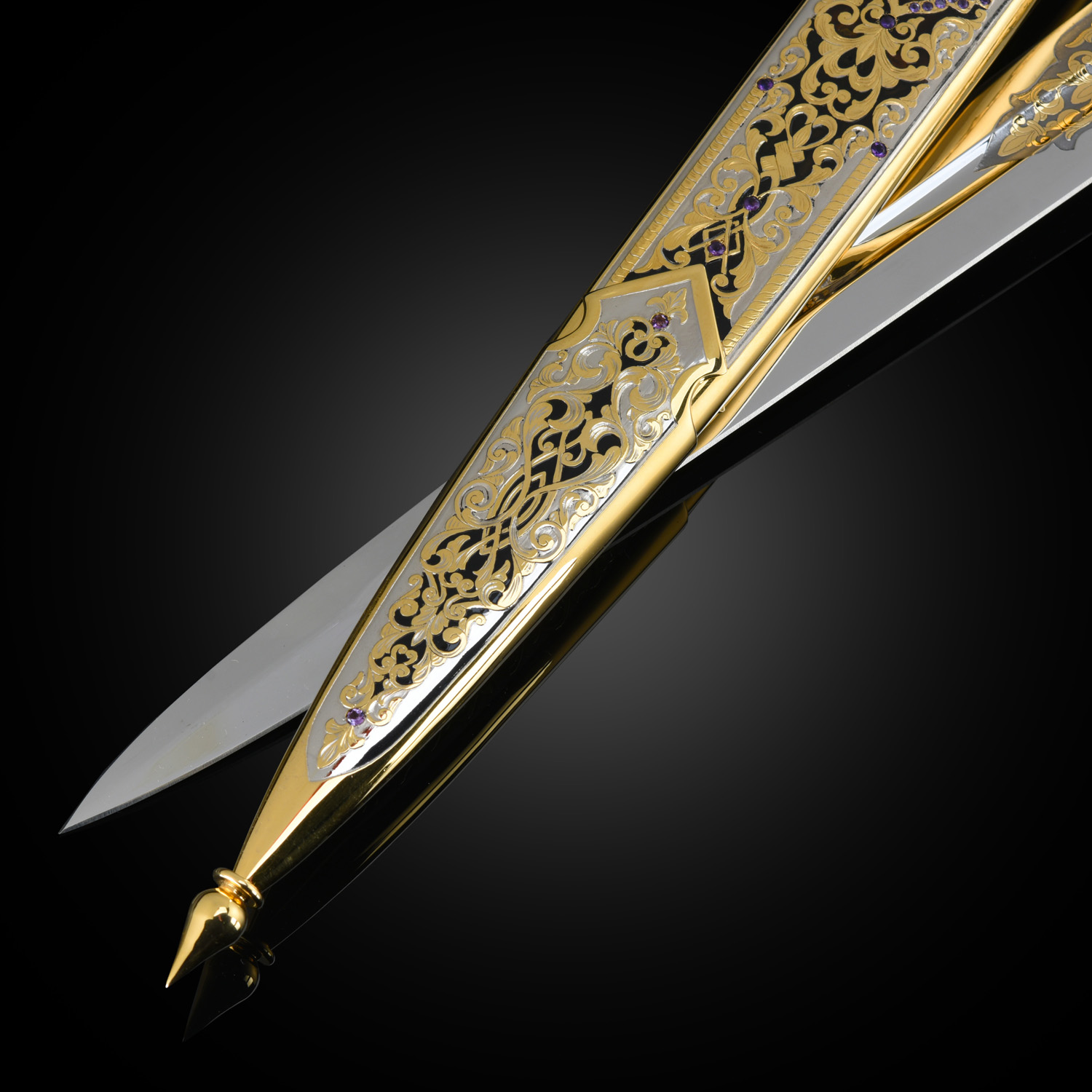 Материалы: сталь ЭИ-107, латунь, никель, золото 999,9*, кап, аметист, топаз.