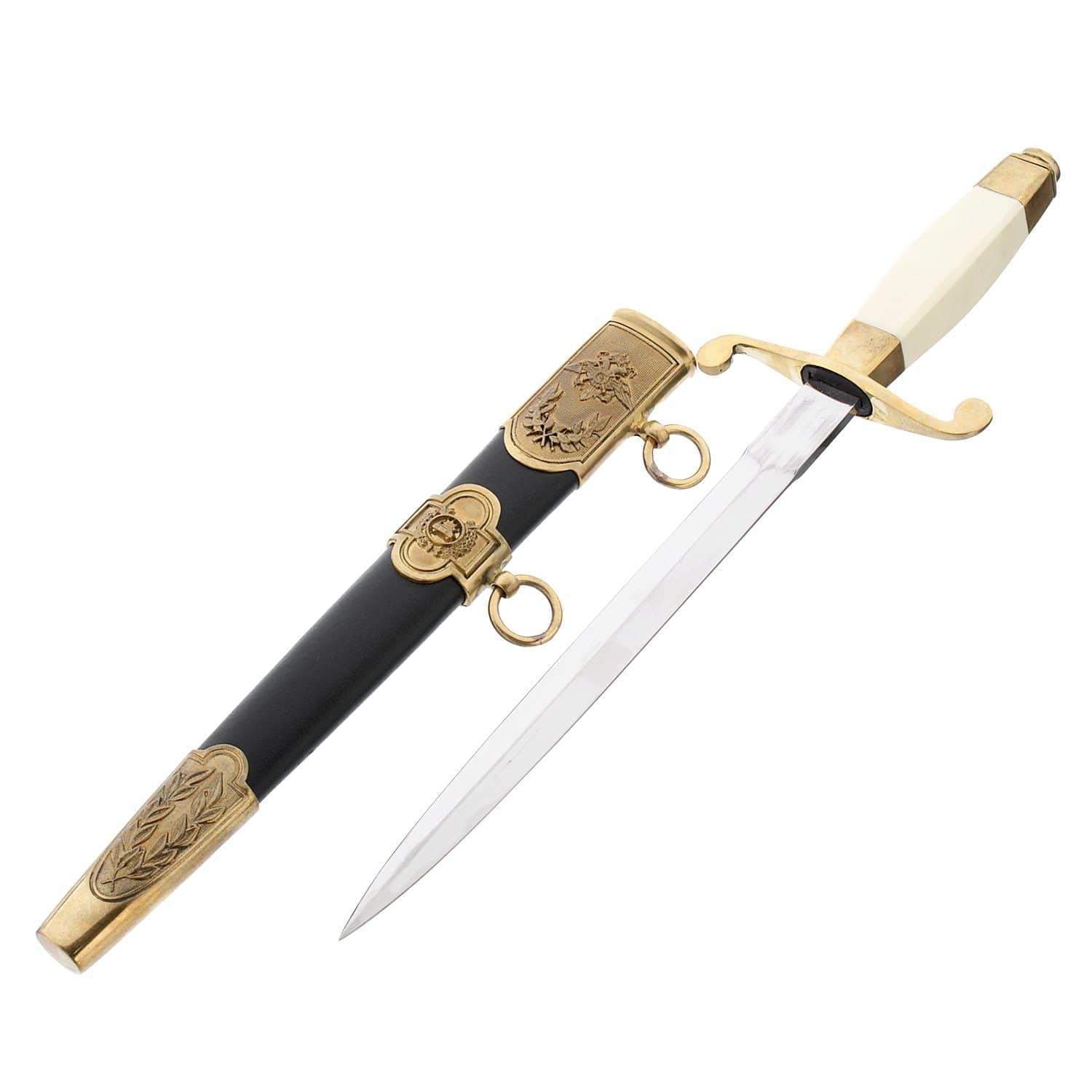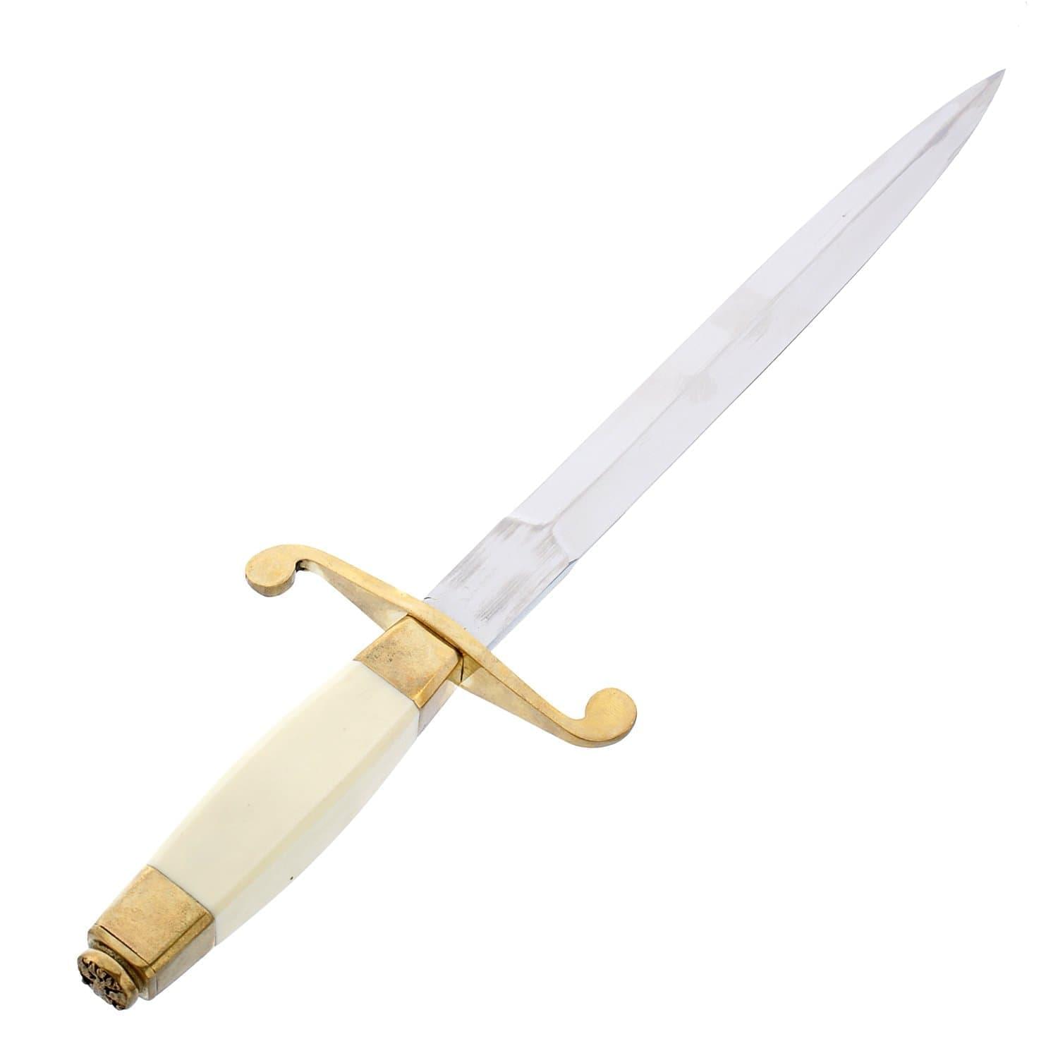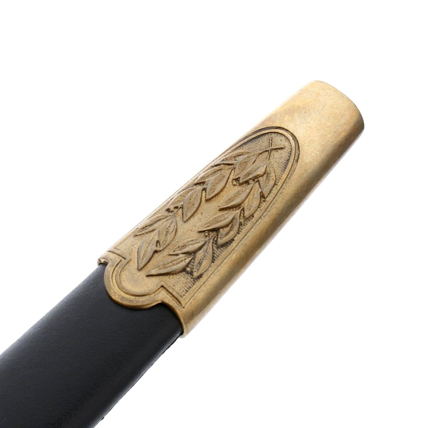 сталь 65Х13, твердость клинка менее 25HRC, латунь, кожа.