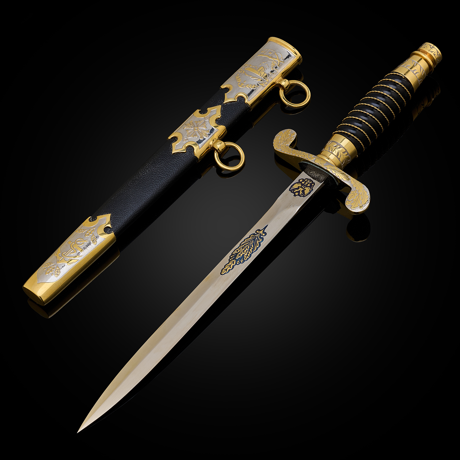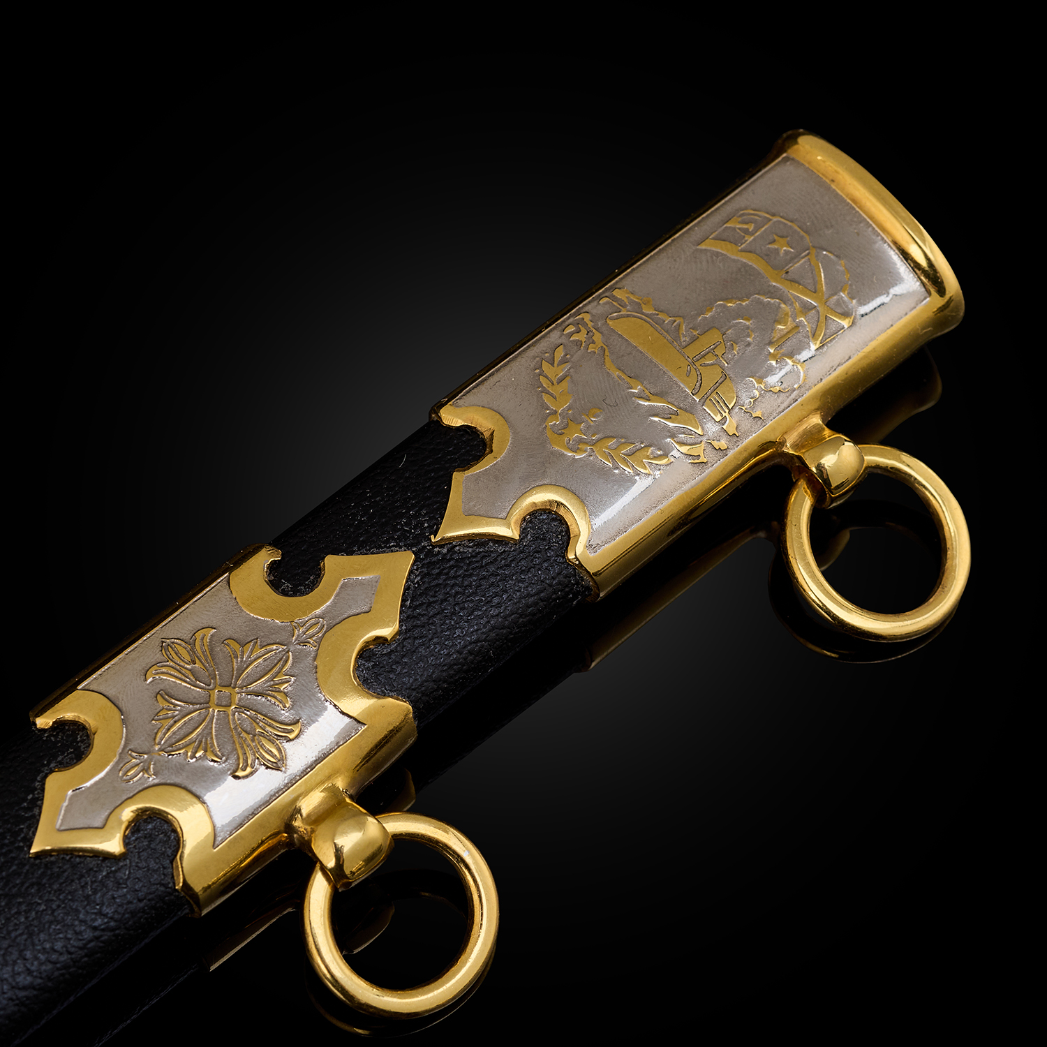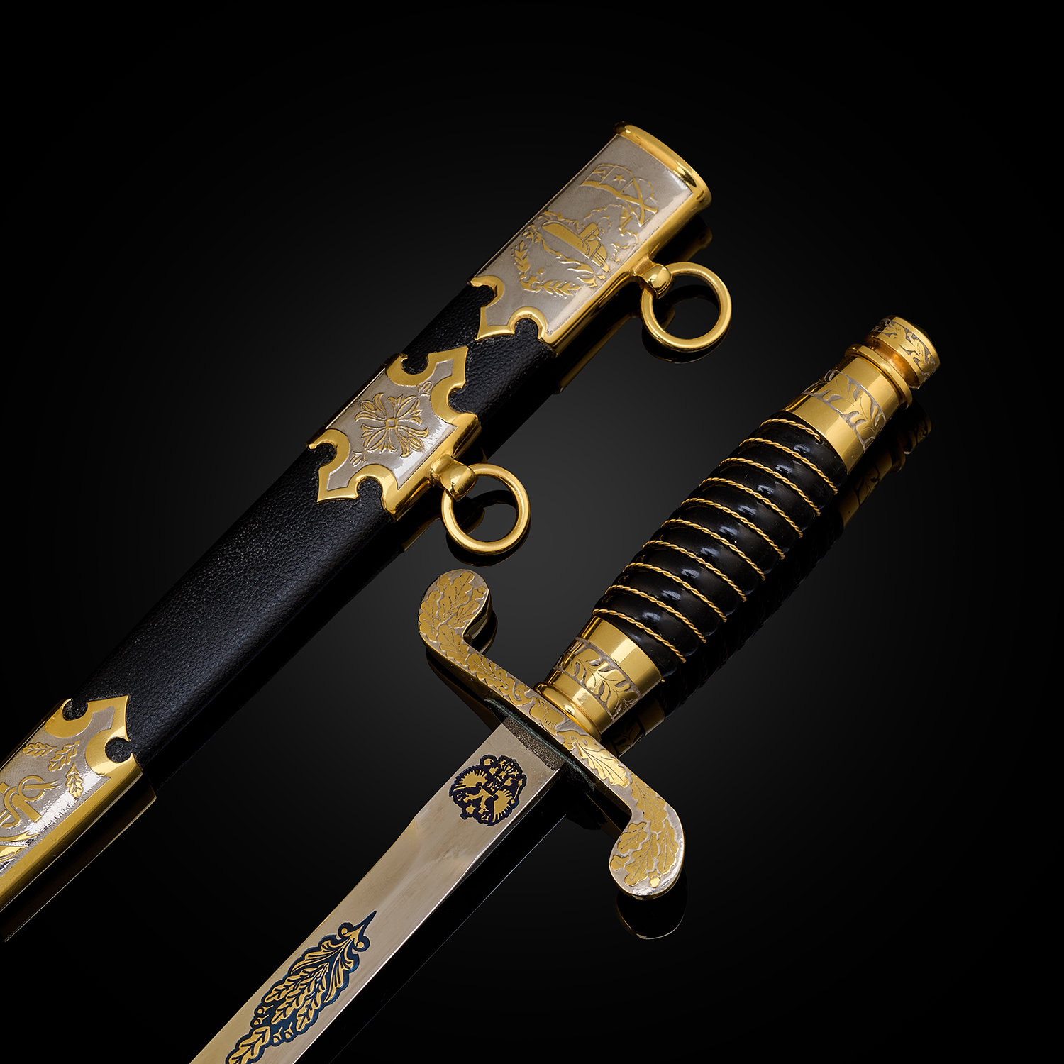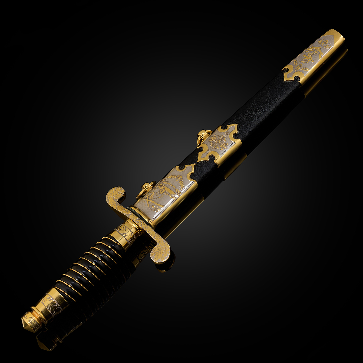 Материалы: сталь ЭИ-107 (40Х10С2М), латунь, никель, золото 999,9*, эмаль, кожа.