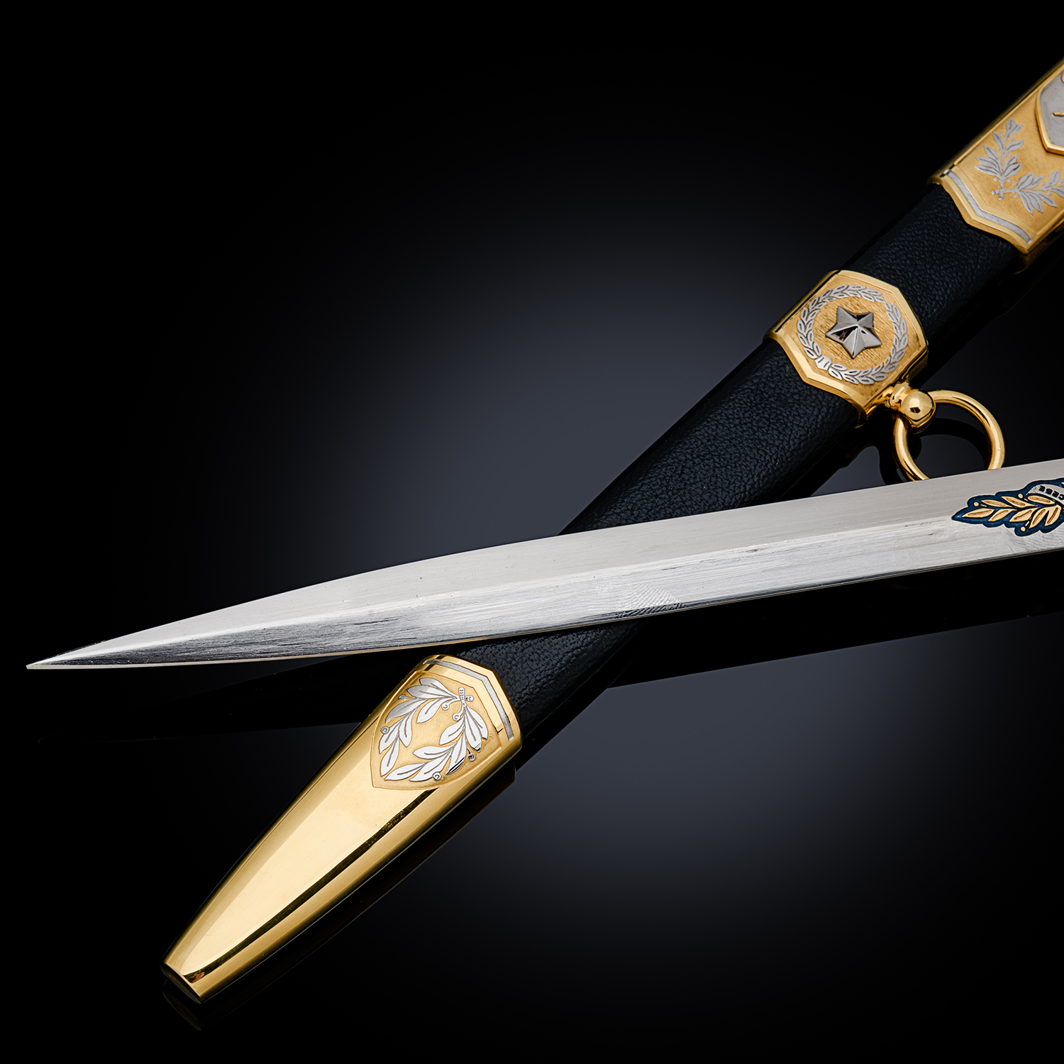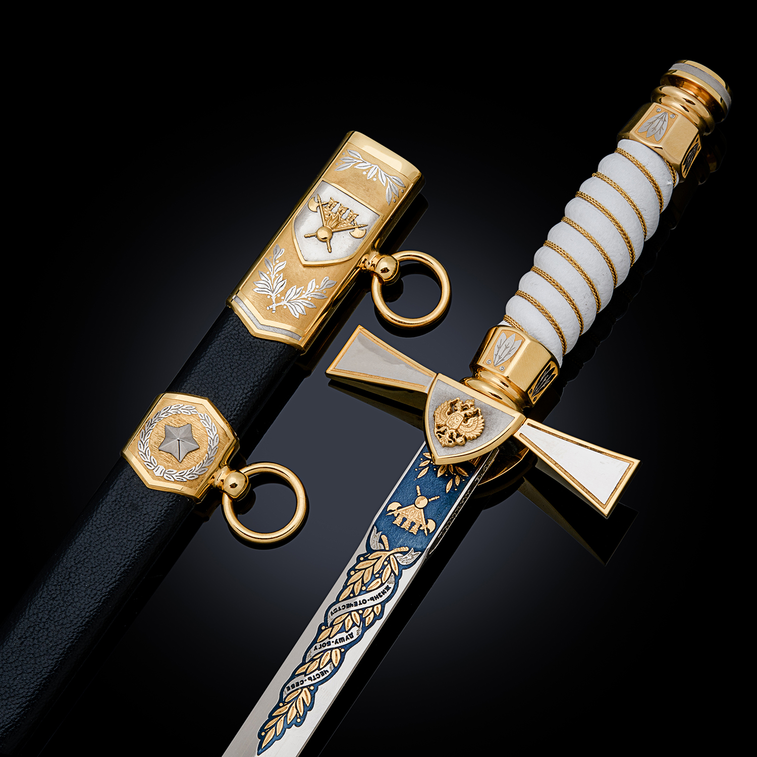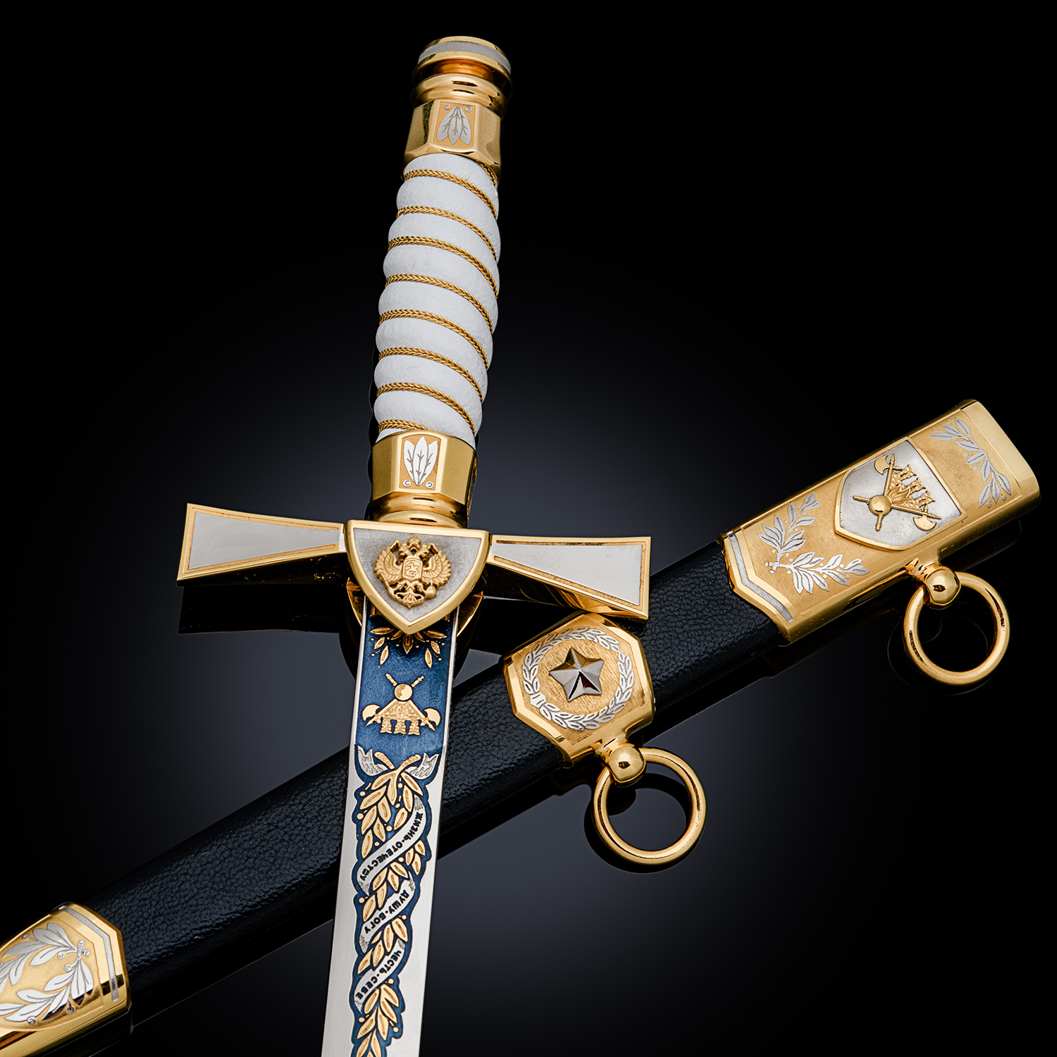 Материалы: сталь ЭИ-107, латунь, никель, золото 999,9*, эмаль, кожа.