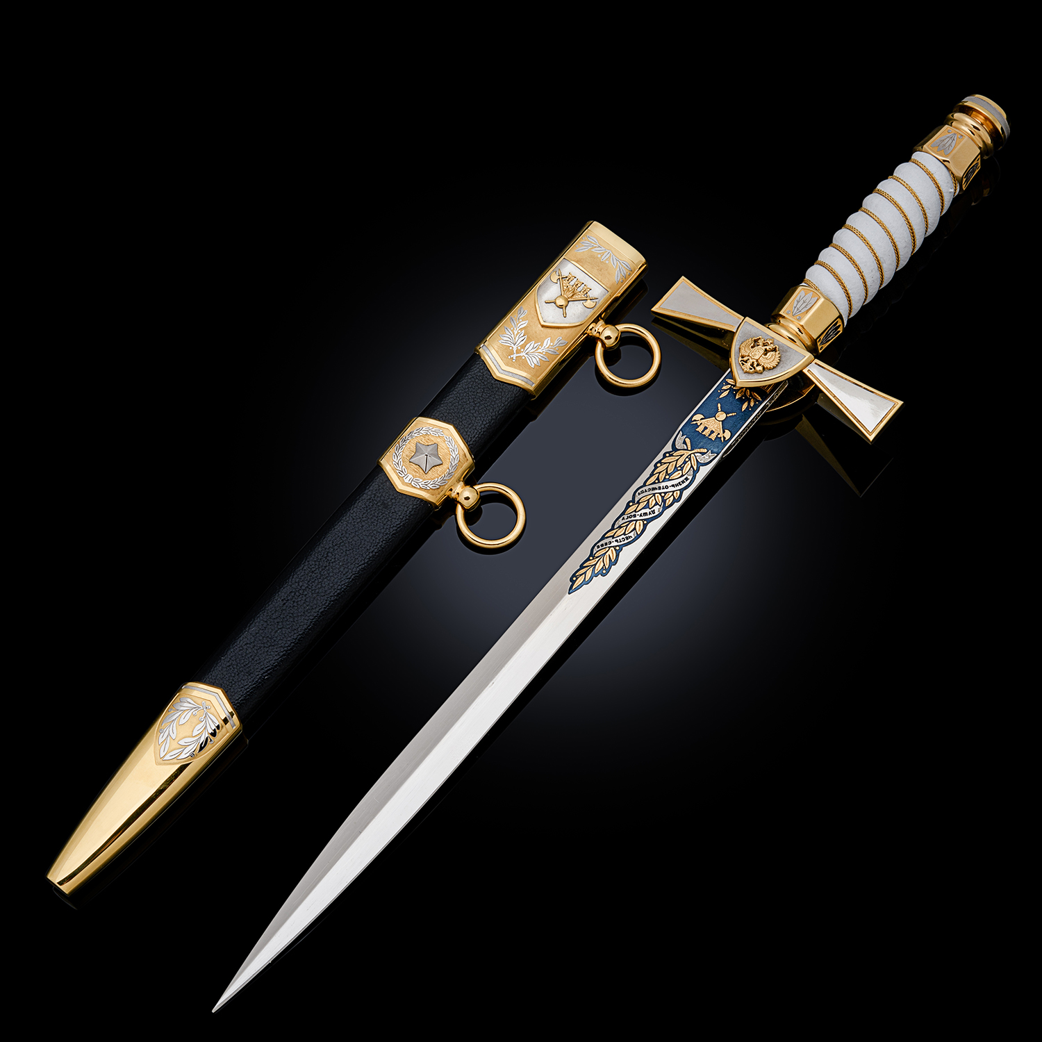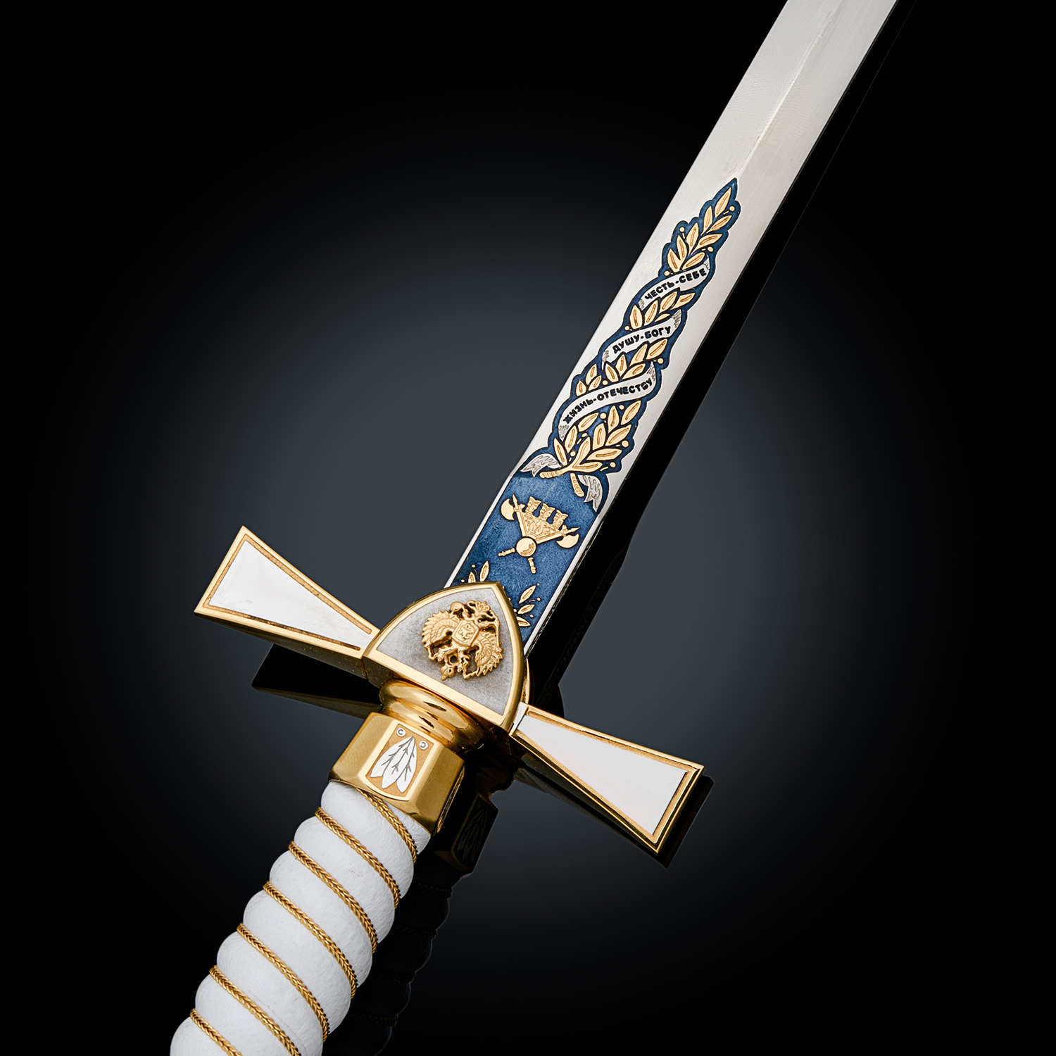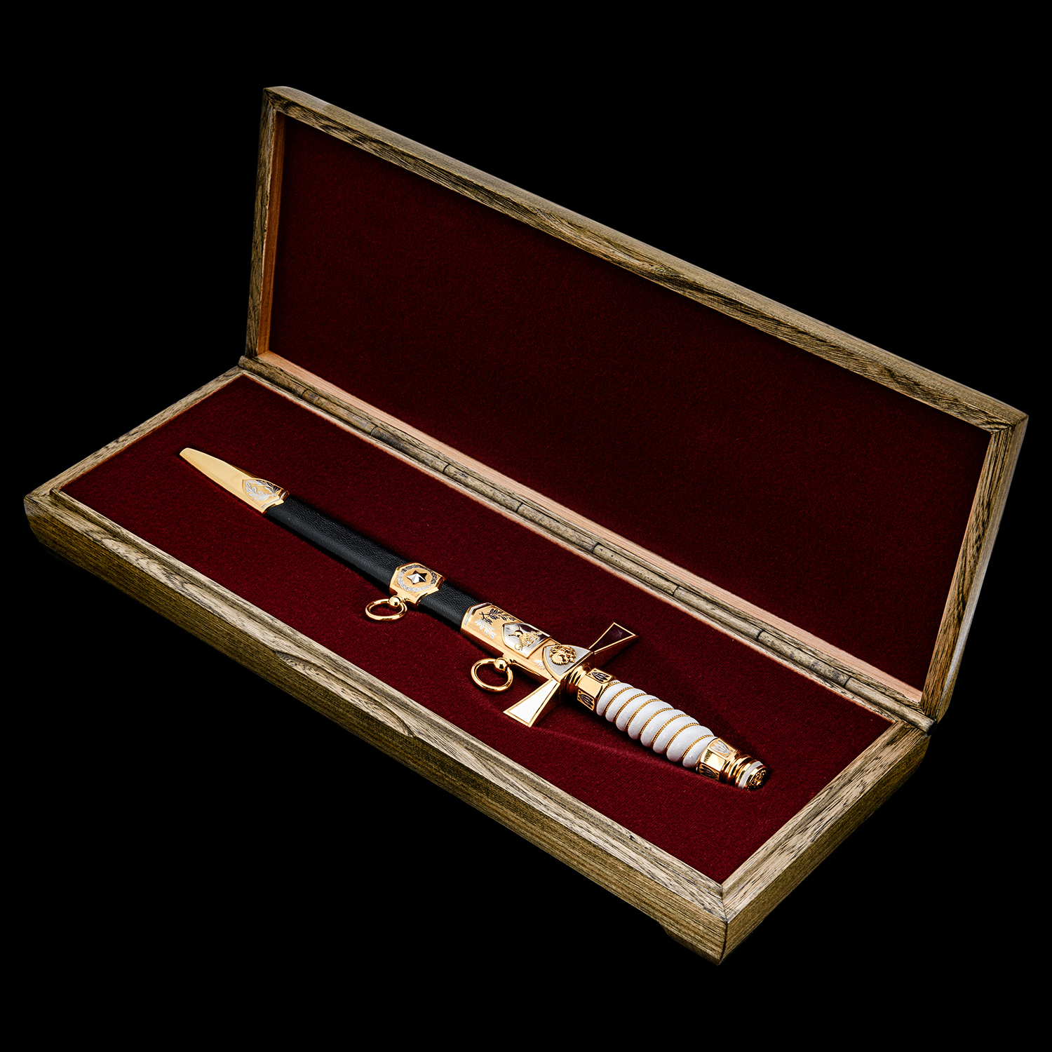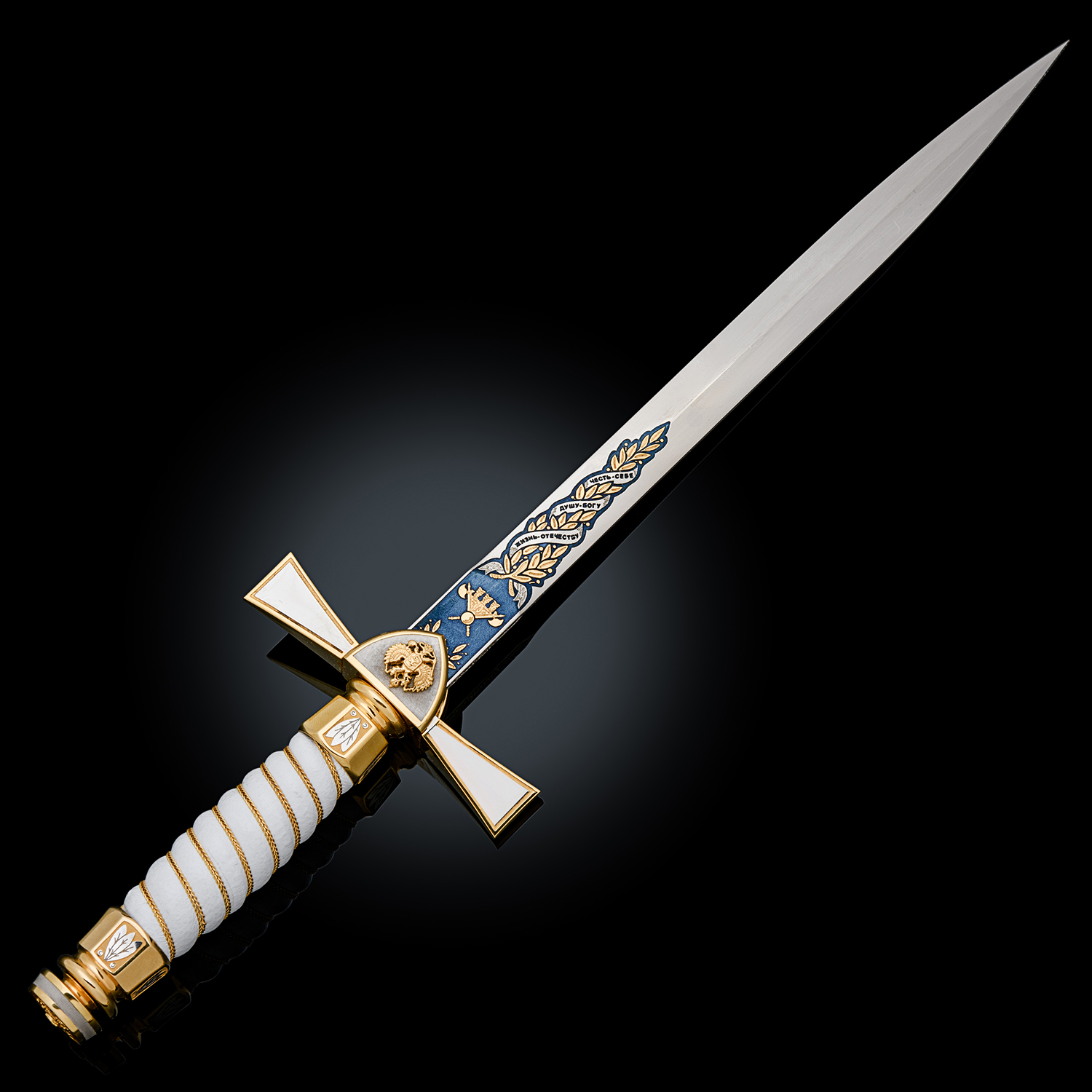 Материалы: сталь ЭИ-107, латунь, никель, золото 999,9*, эмаль, кожа.