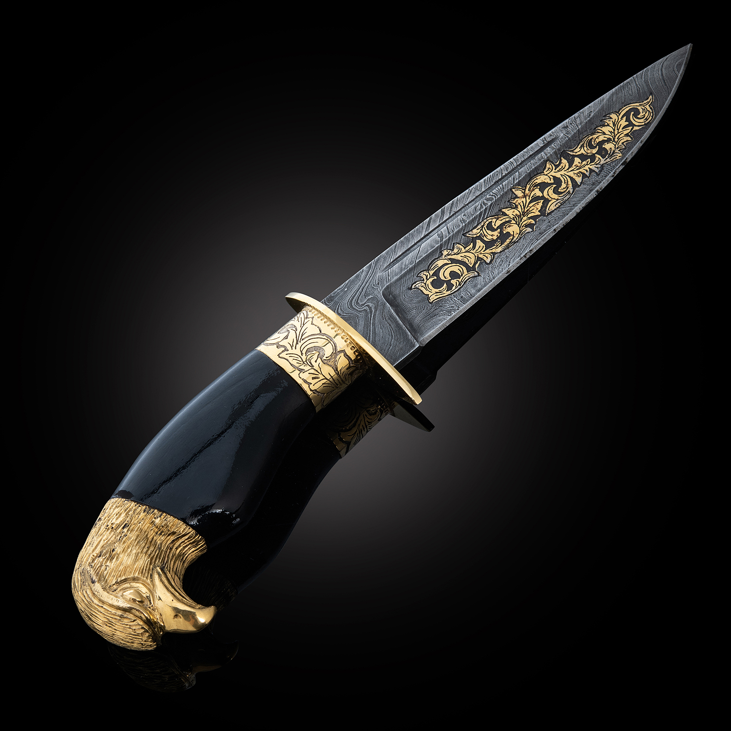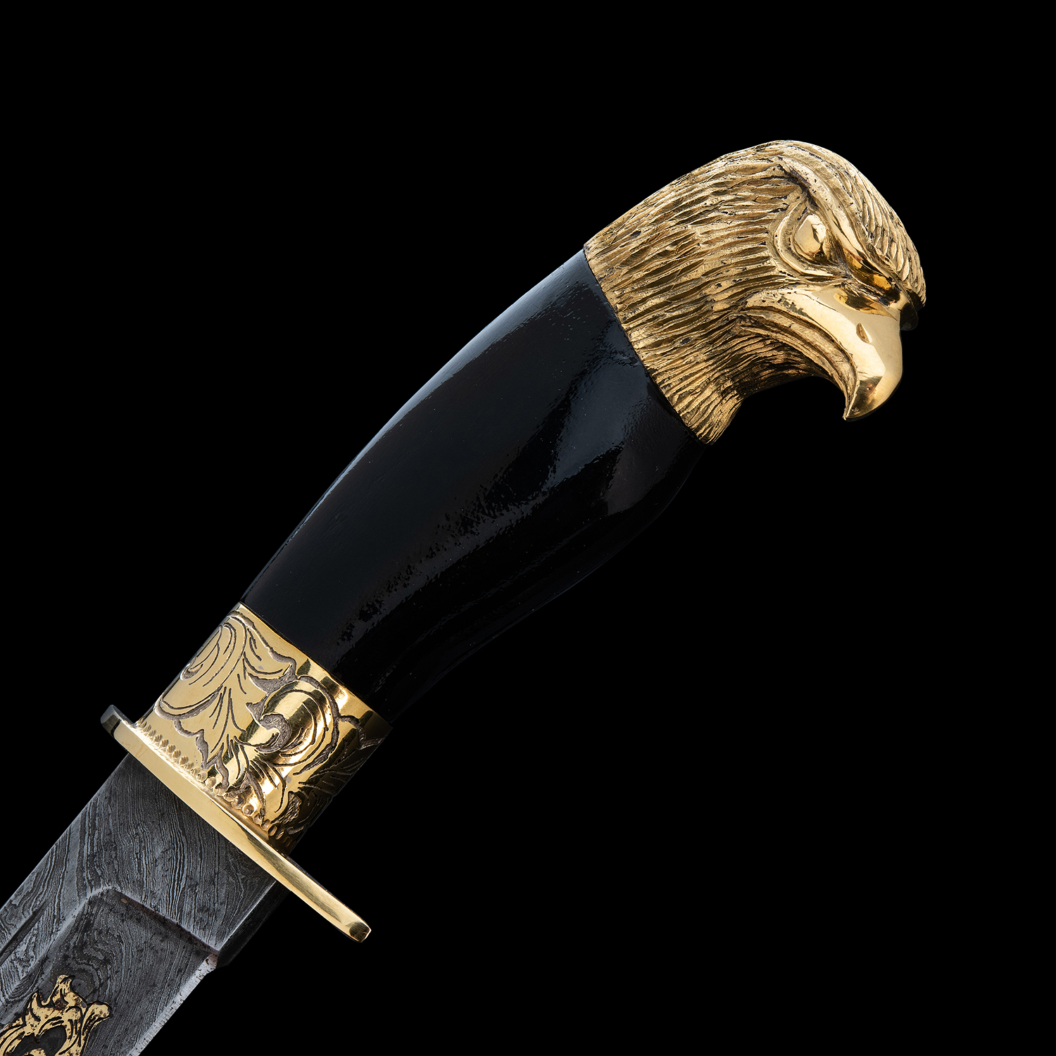 Сокол - славянский символ. В образе сокола, согласно поверьям древних славян, воплощались мужество, храбрость и самоотверженность. Перед Вами - шедевр от российского оружейника, который по достоинству оценят коллекционеры авторского холодного оружия и почитатели оригинальных образцов предметного дизайна. Отличный вариант подарка шефу на день рождения! Нож с клинком из дамасской стали на оригинальной подставке вызовет неподдельное восхищение у мужчины.