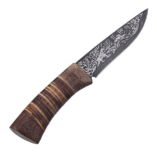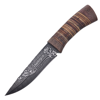 Нож сувенирный из дамасской стали с рукоятью из бересты. Златоуст