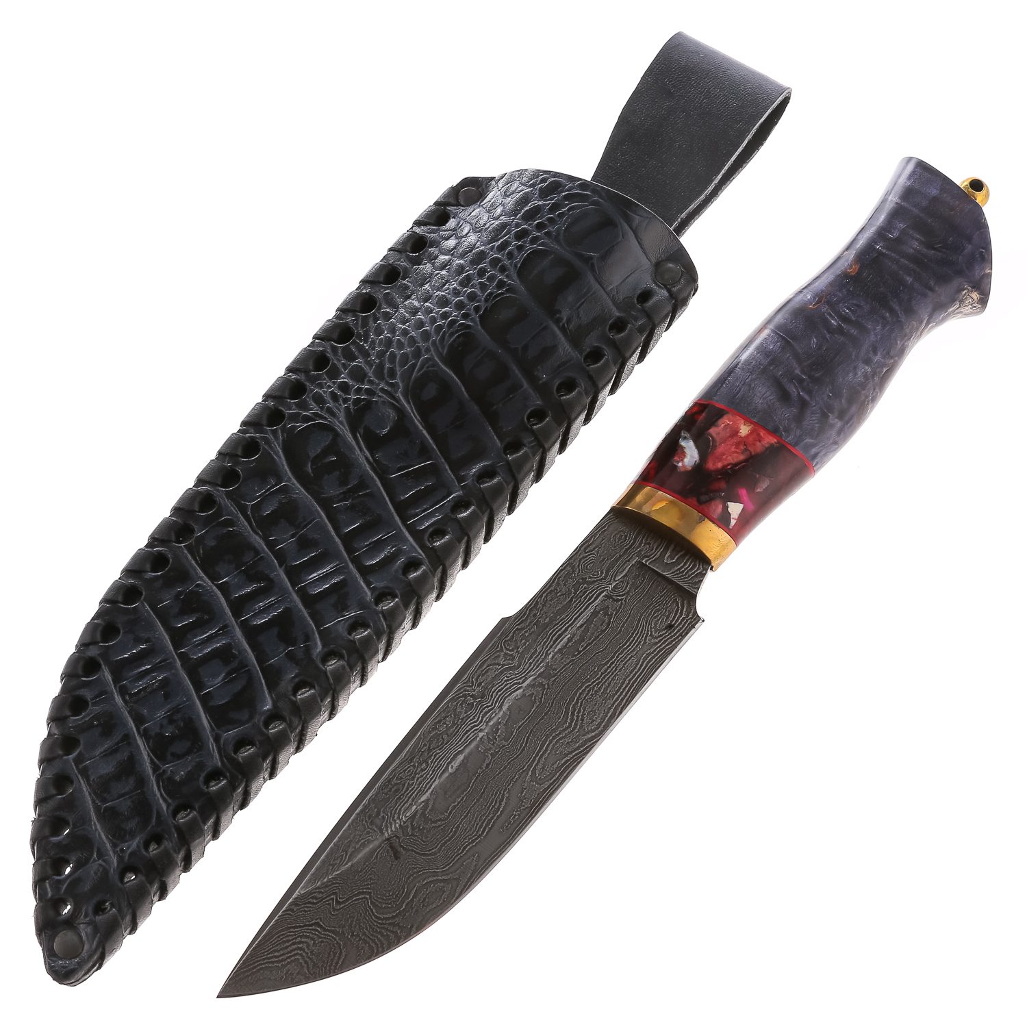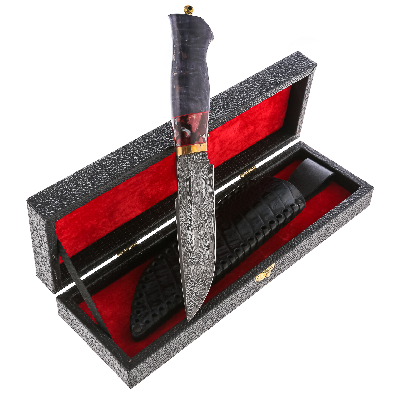 Материалы: дамасская сталь, латунь, стабилизированная карельская береза.