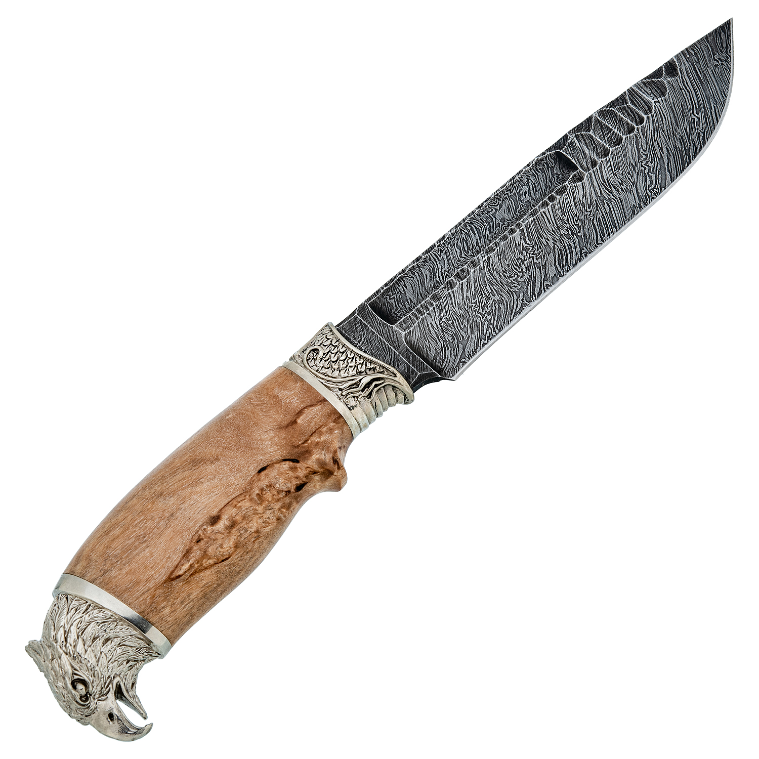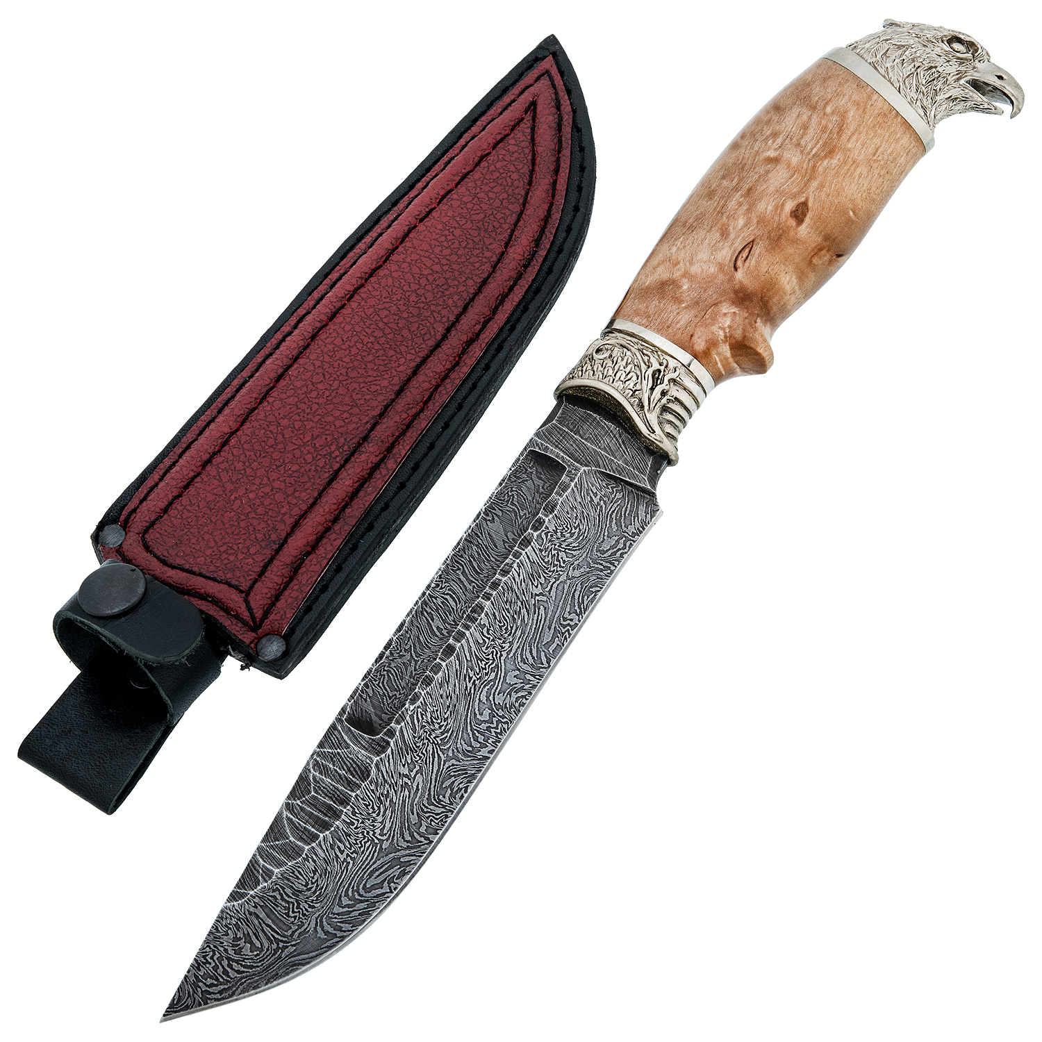 Материалы: дамасская сталь, латунь, дерево, кожа.