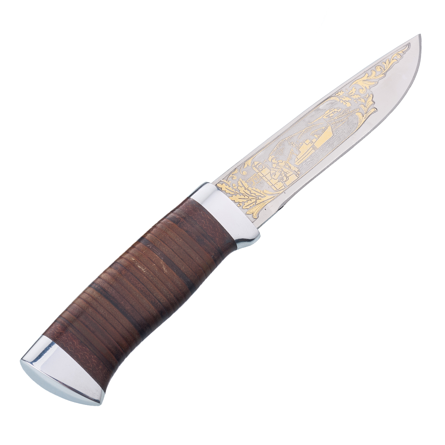 Материалы: сталь 40х10с2м, золото 999,9*, дерево, кожа.