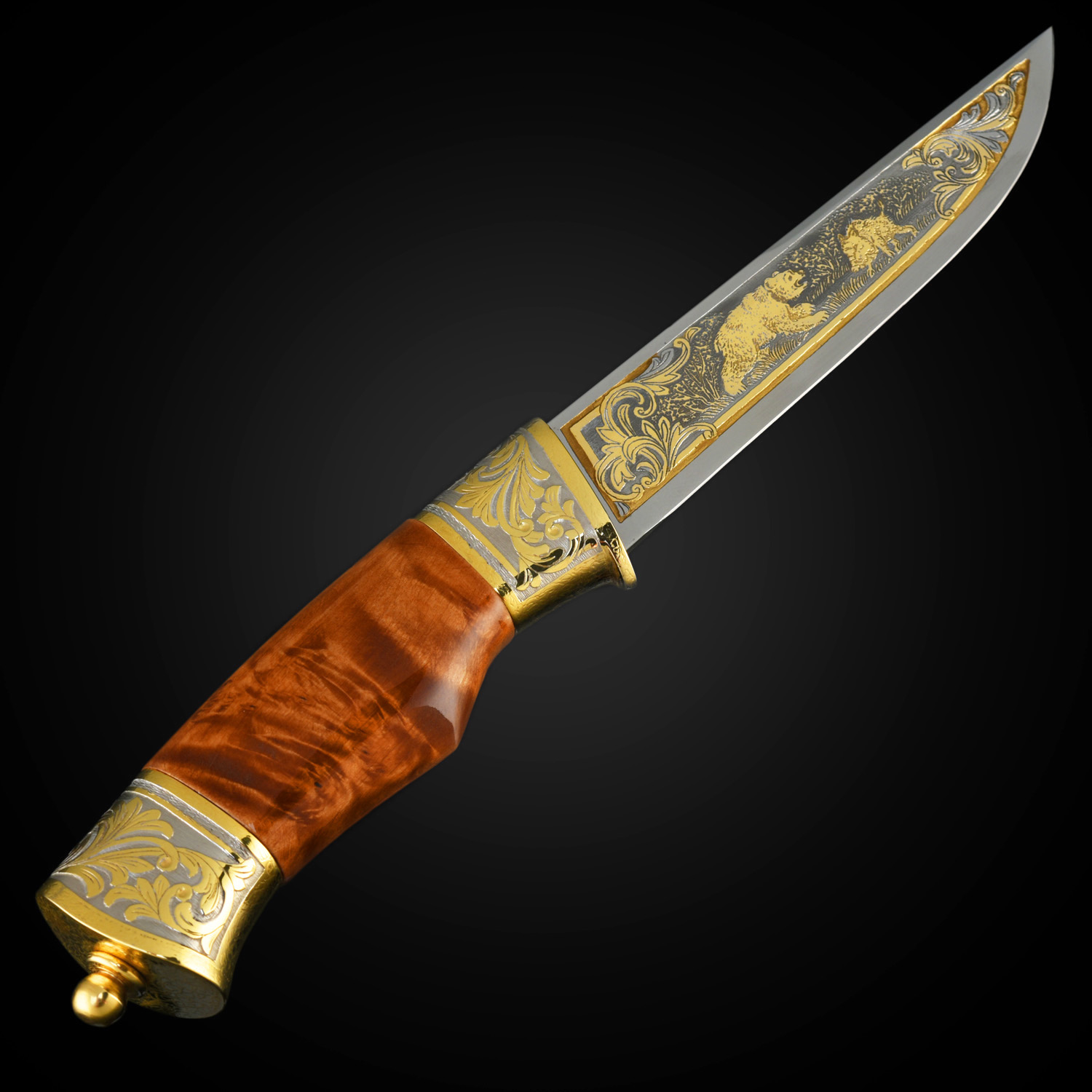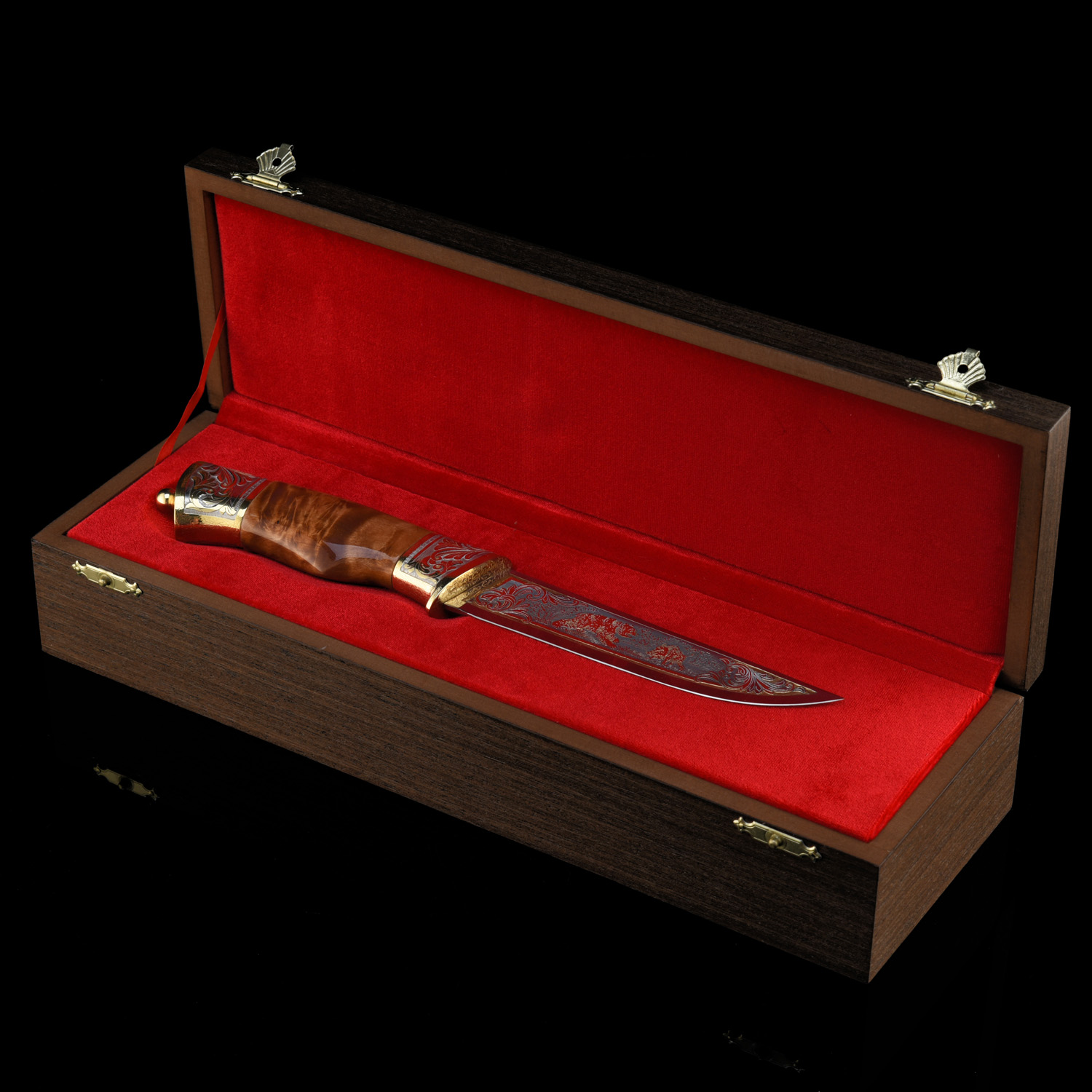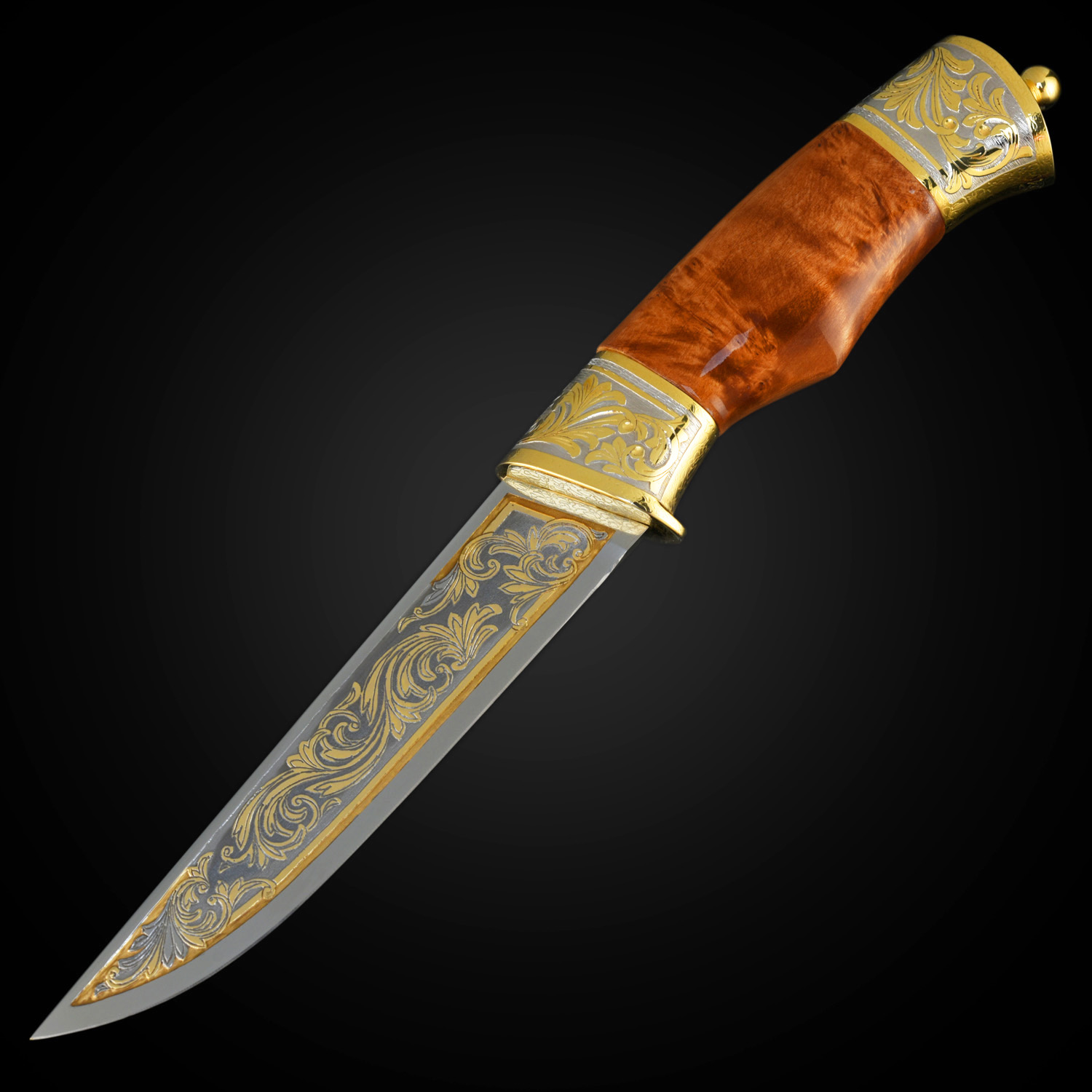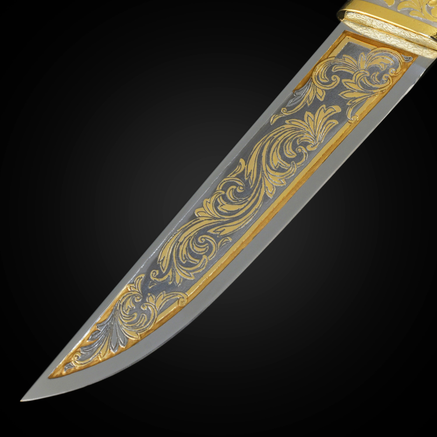Материалы: сталь ЭИ-107, латунь, никель, золото 999,9*, дерево, кожа.