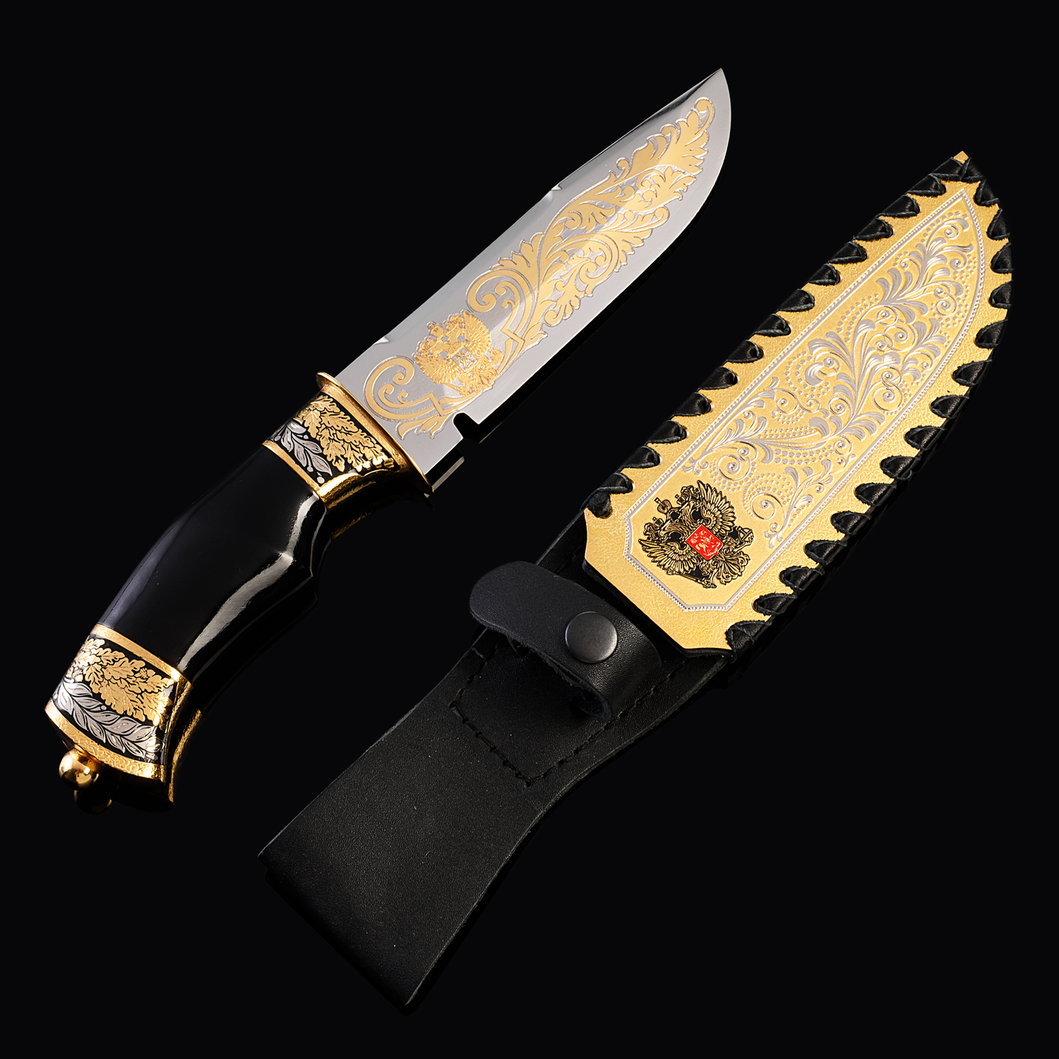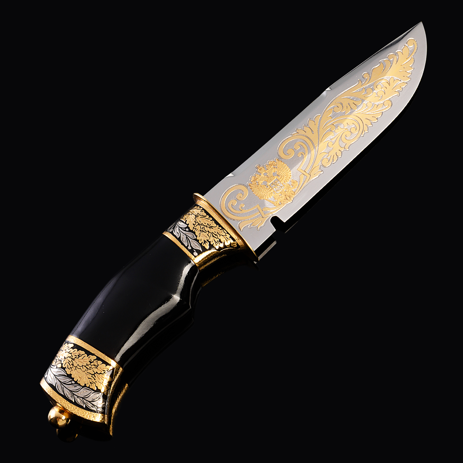 Материалы: сталь ЭИ-107, латунь, никель, золото 999,9*, эмаль, дерево, кожа.