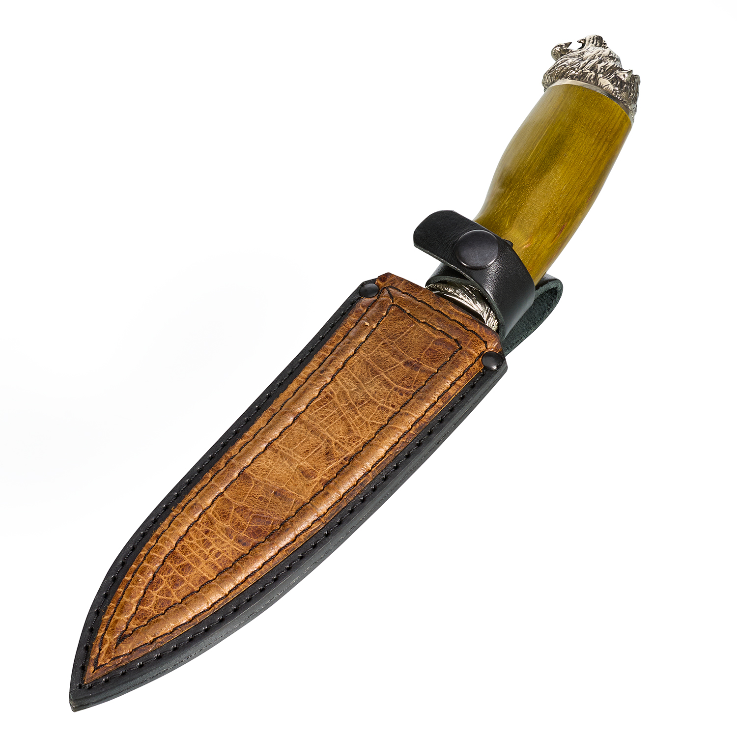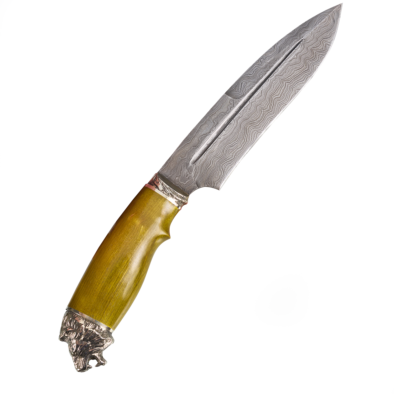 Материалы: дамасская сталь, бронза, дерево, кожа.